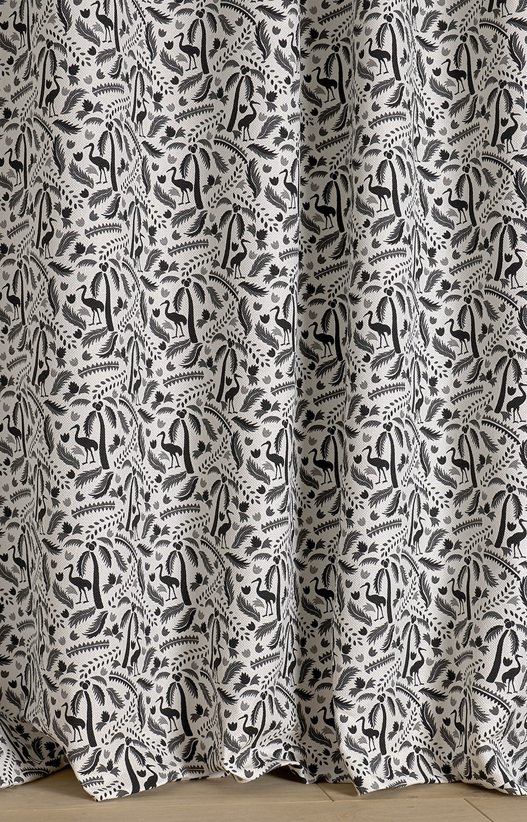 Playful and exotic, the GATWICK pattern combines palm trees and ibises.