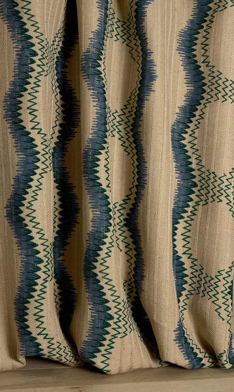 Vertical undulating bands evoking the lace ribbons of the second half of the 18th century.