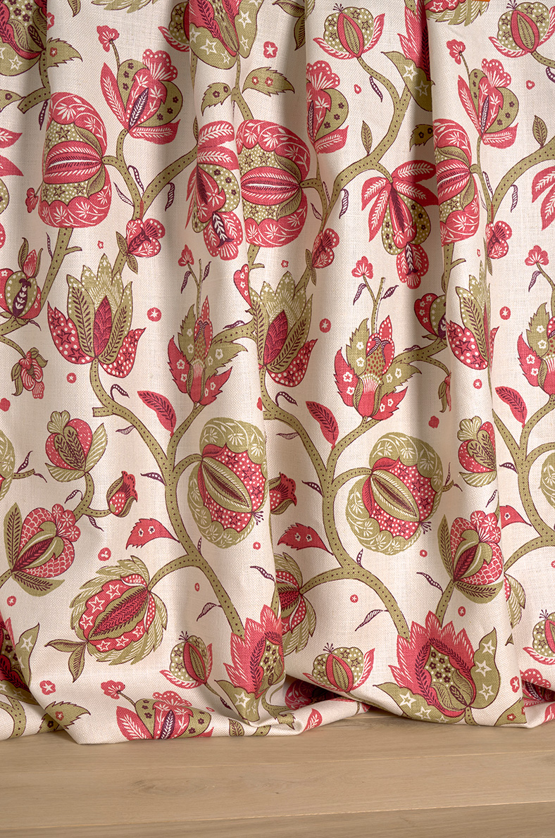 This beautiful design reflects the spirit of the Indiennes imported in the 18th century by the English and French East India Companies.