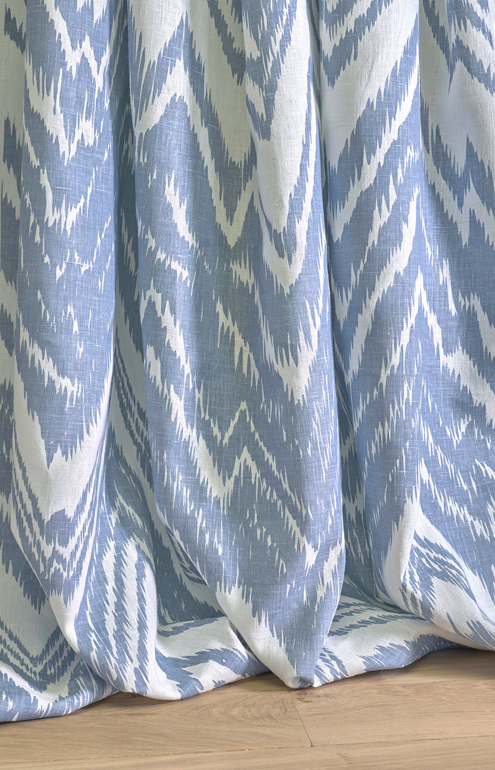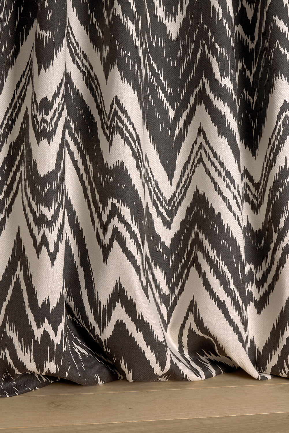 A large, irregular monochrome chevron, FLAME LARGE THORP delivers a contemporary version of the Hungarian stitch that was fashionable in the 17th century.