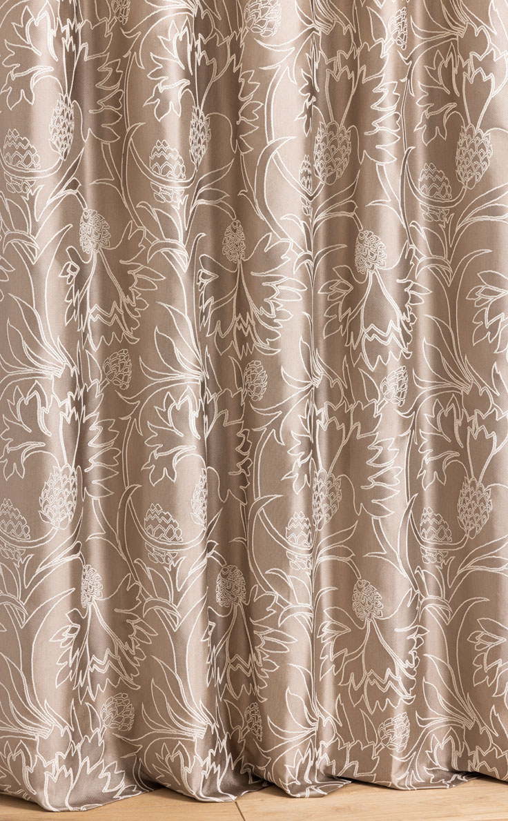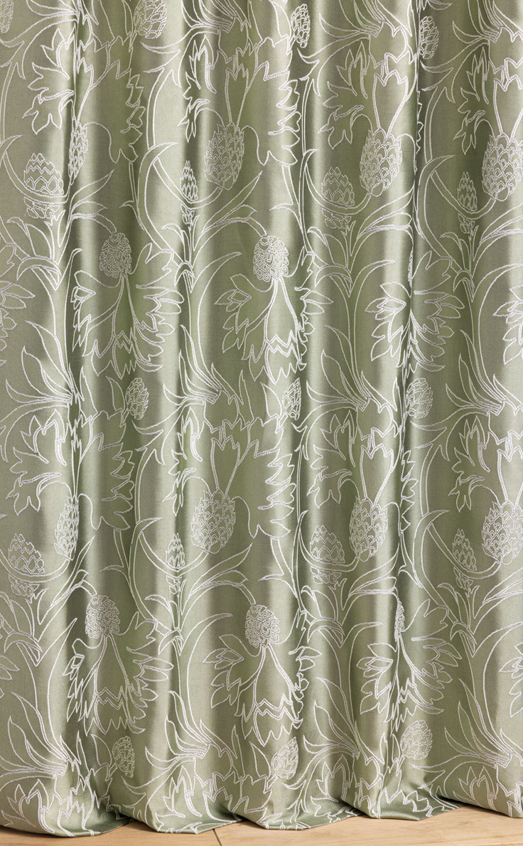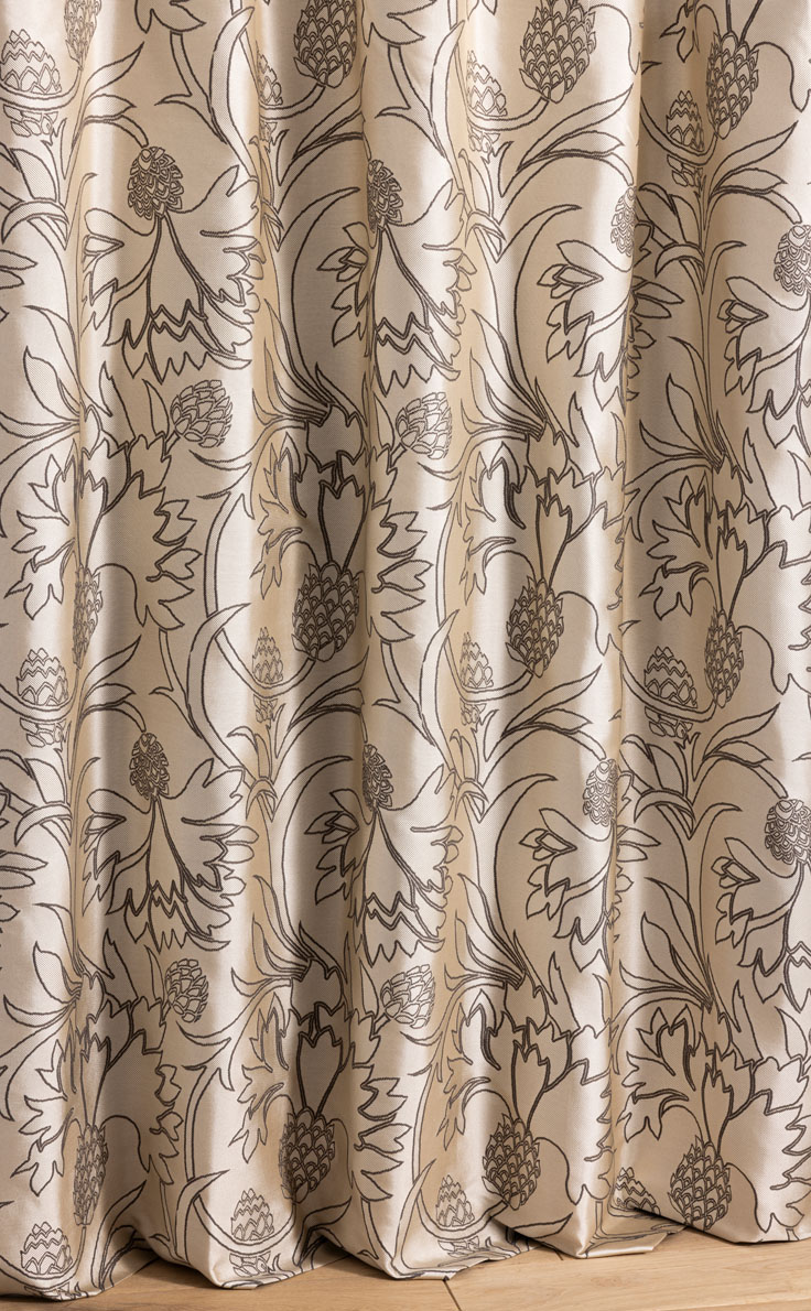Evoking the iconic symbol of Scotland and the Thorp of London corporate logo, the thistle reveals its contours on this jacquard fabric.
