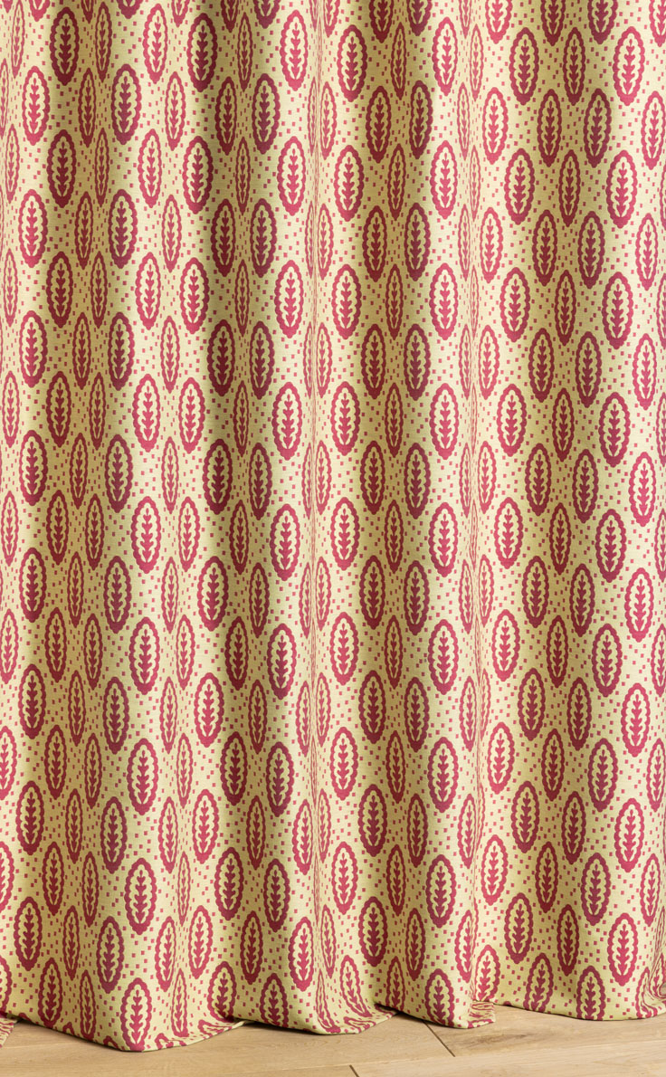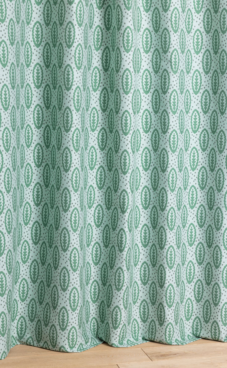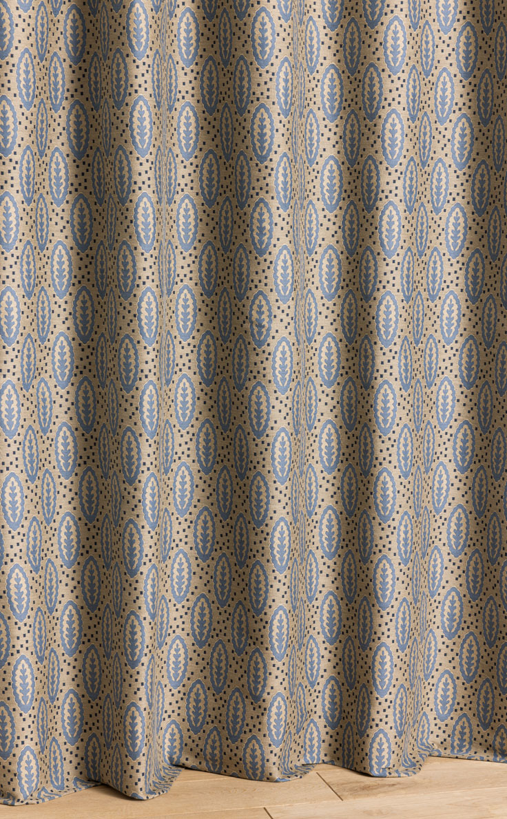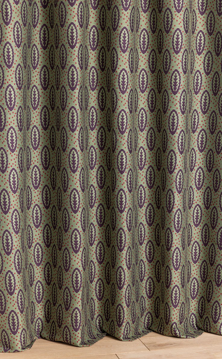 CAMEO jacquard features a stylized leaf motif with a naive, bucolic spirit.
