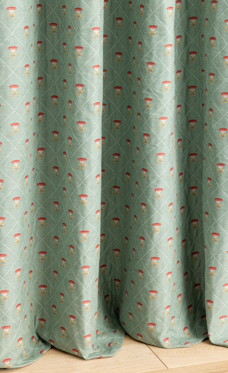MORNING GLORY is a jacquard with a classic floral lattice pattern reminiscent of the delicate brocaded cotton fabrics of the 18th century.