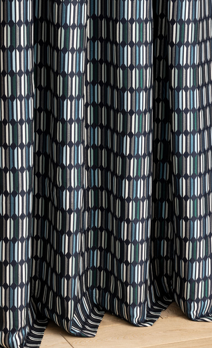 This silky jacquard with modernist accents will enhance both designer's and contemporary interiors.