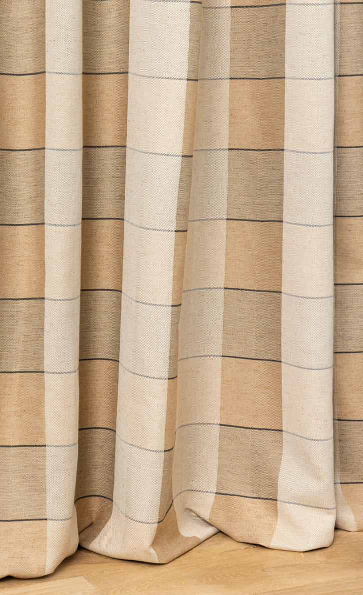 This large check, partly made of cotton and linen, is reminiscent of the mattress fabrics we liked to superimpose.
