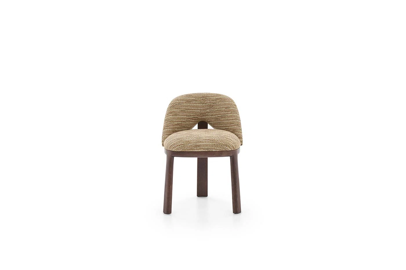 DUNE, envisioned by Constance Guisset for Maison Pierre Frey, emerges as an iconic collection of chairs and stools. Featuring a bar stool, a counter stool, and a dining chair, the line showcases upholstered tripod designs suited for diverse settings. The rear leg, crafted from solid wood, anchors the piece to the floor while gently elevating the backrest with an elegant and airy curve. DUNE combines a contemporary and sophisticated aesthetic with exceptional seating comfort, offering a backrest that embraces the body and a design that guarantees stability.
