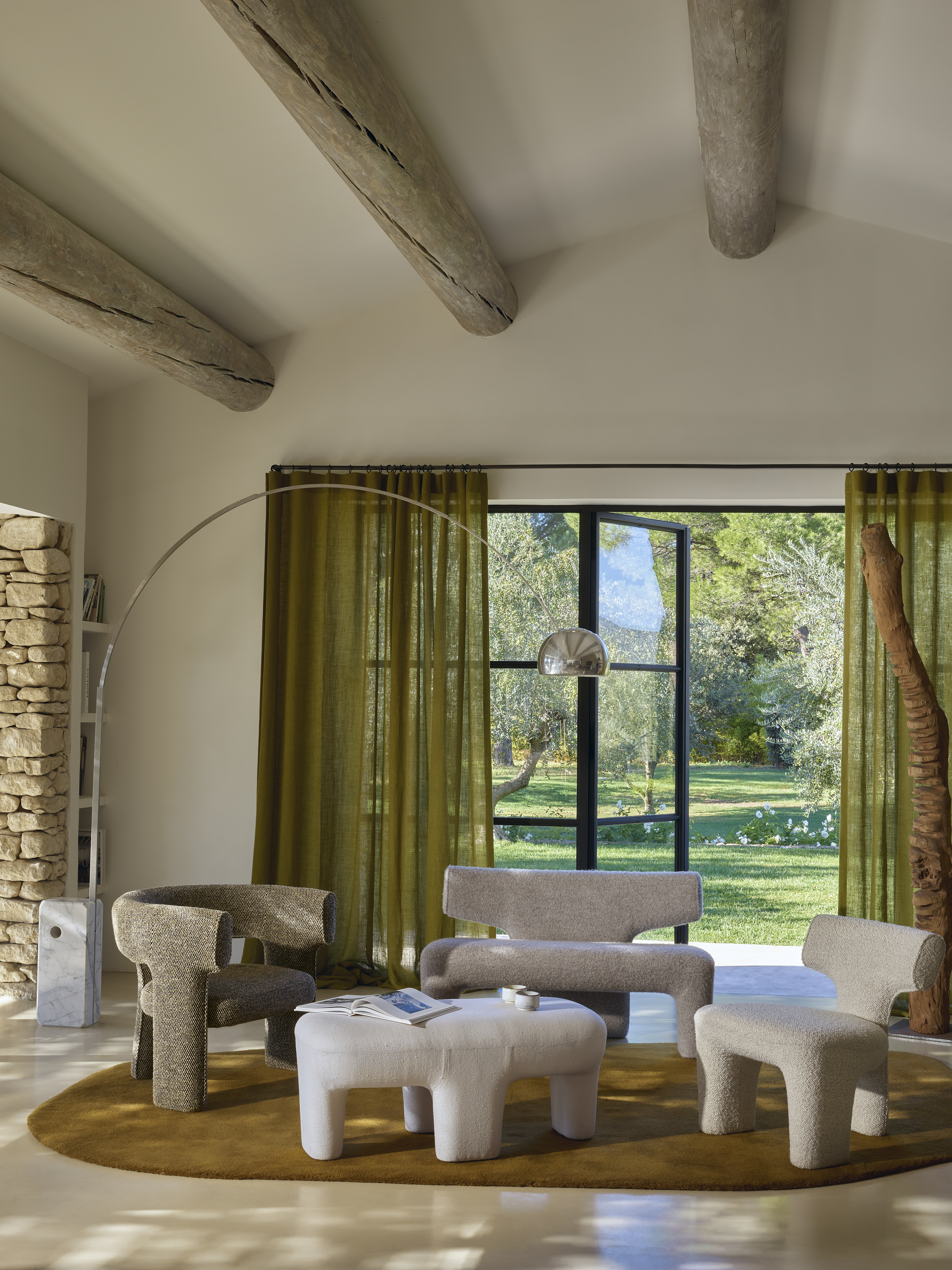The LITHO line, designed by Guillaume Delvigne, means « stone » in ancient Greek. It resembles a primitive landscape where each piece would have its own personality and would resonate with each other. Each piece is the result of an assembly of volumes, either nested or simply placed one on top of the other, reinforcing this monolithic presence. Large, massive and sculpted forms emerge with a polished, almost mineral appearance.
