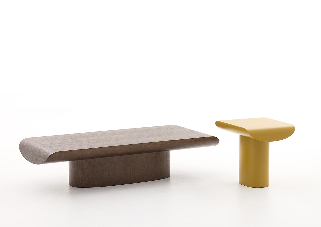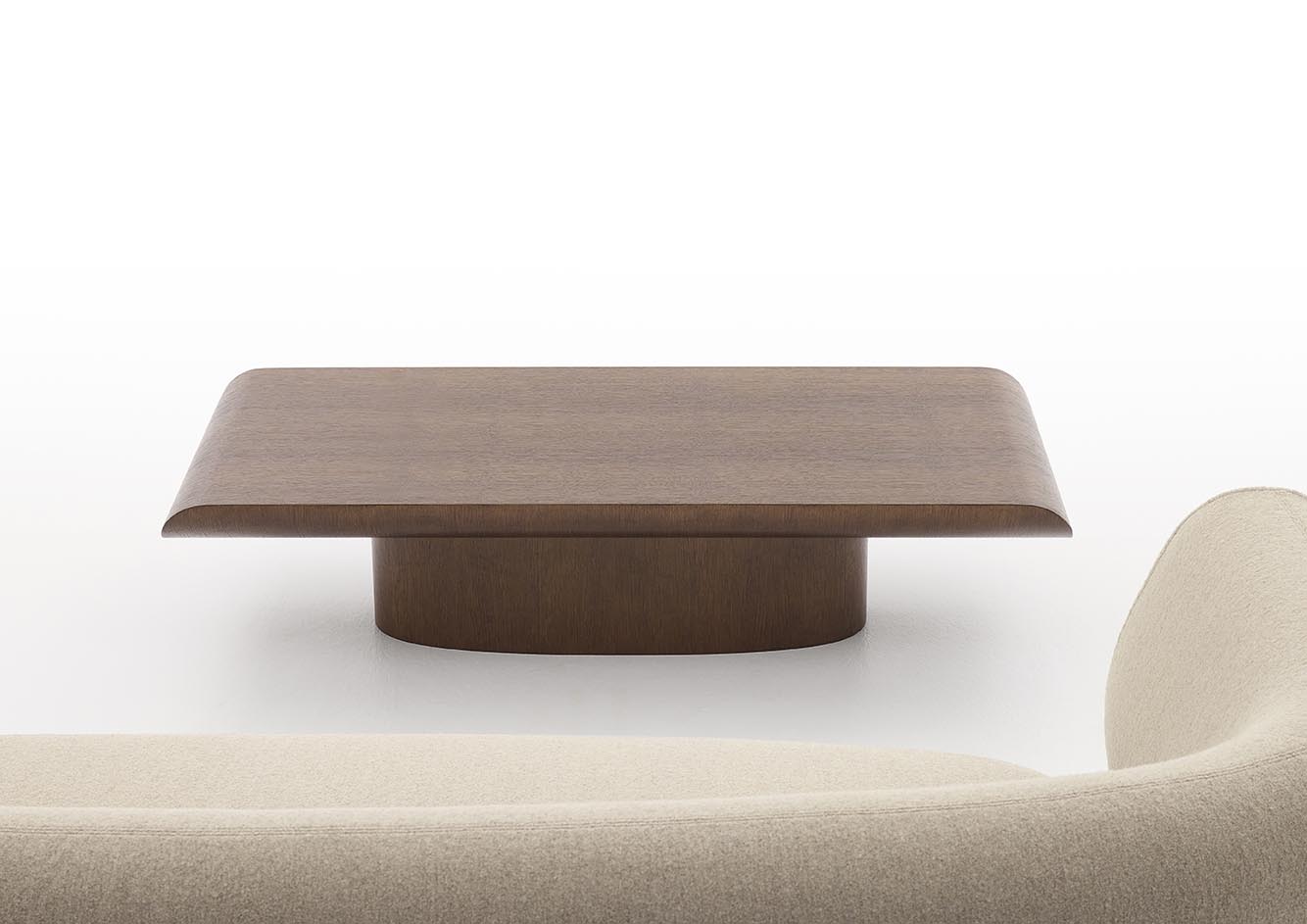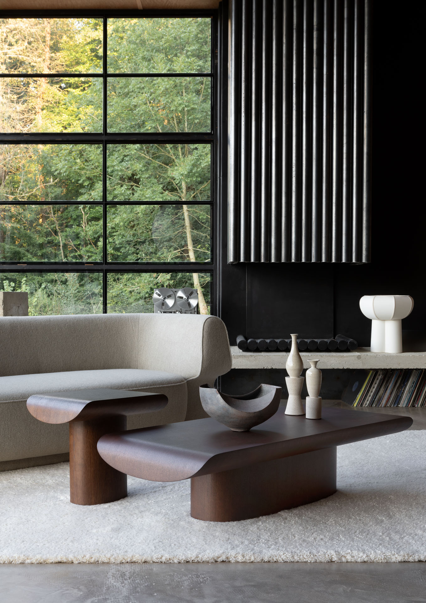 The MILO line, designed by Guillaume Delvigne, consists of coffee tables and a pedestal table, available in oak and lacquer. The tabletops of these pieces appear to float above their central base, creating a sense of perfect balance while enhancing the objects they display. With generous thickness, they feature subtly curved ends that gracefully glide towards the floor, reminiscent of water flow. This gentle and fluid curvature gives the line an organic and architectural look, adding both a feeling of delicate movement and distinctive visual character through the interplay of light on the material. Crafted with respect for traditional woodworking and lacquering craftsmanship, this line highlights the beauty, the richness of the materials and seamlessly complements any decor.