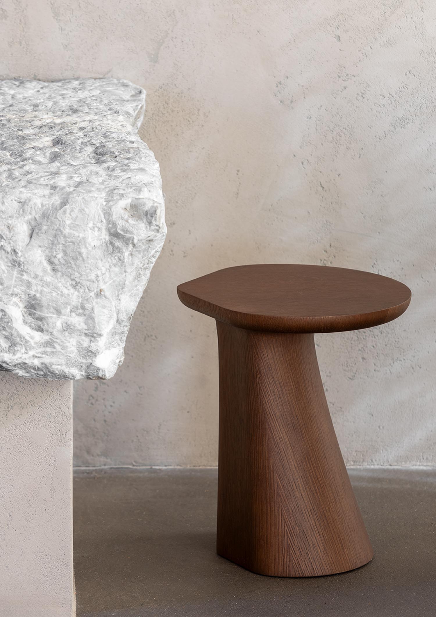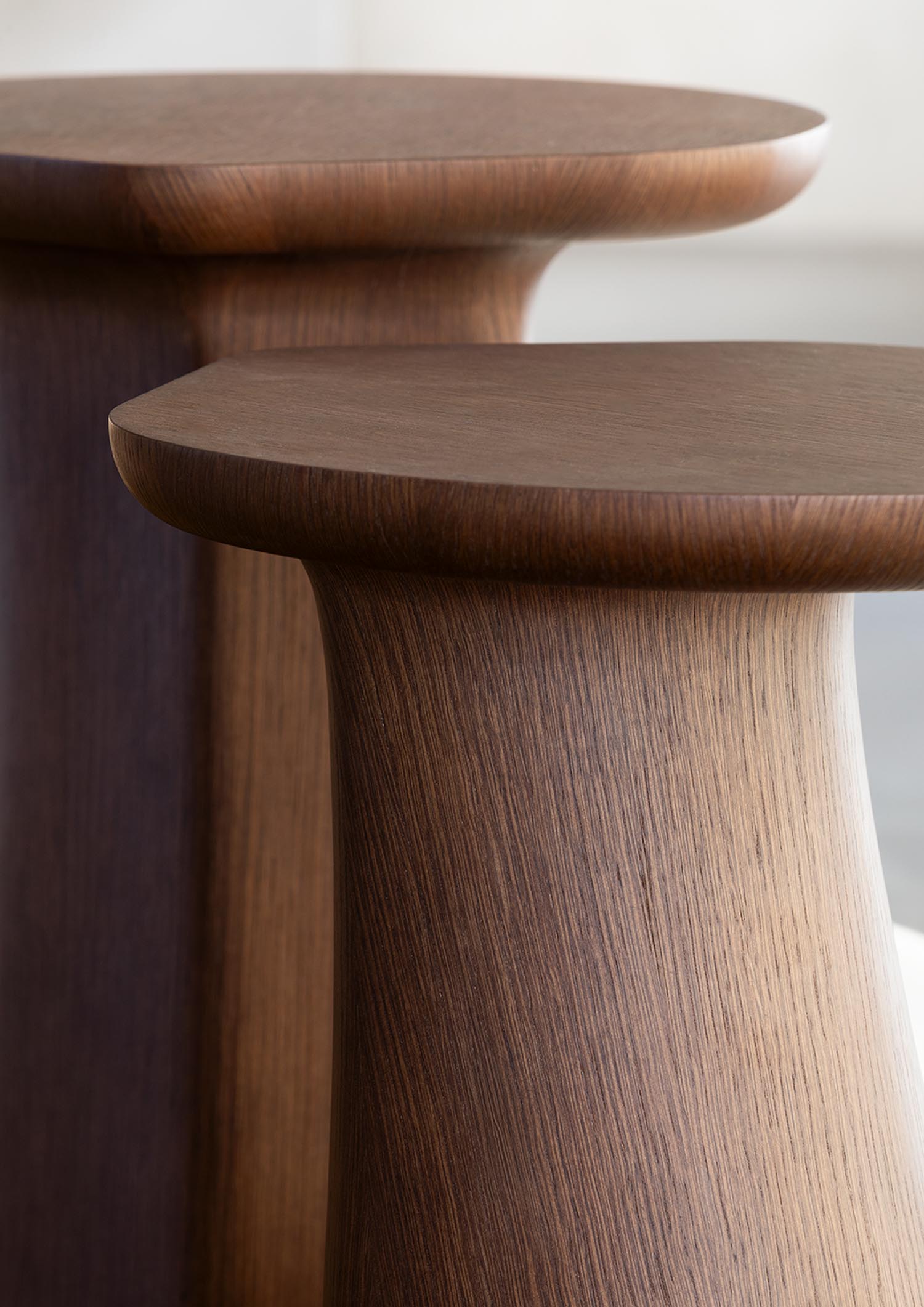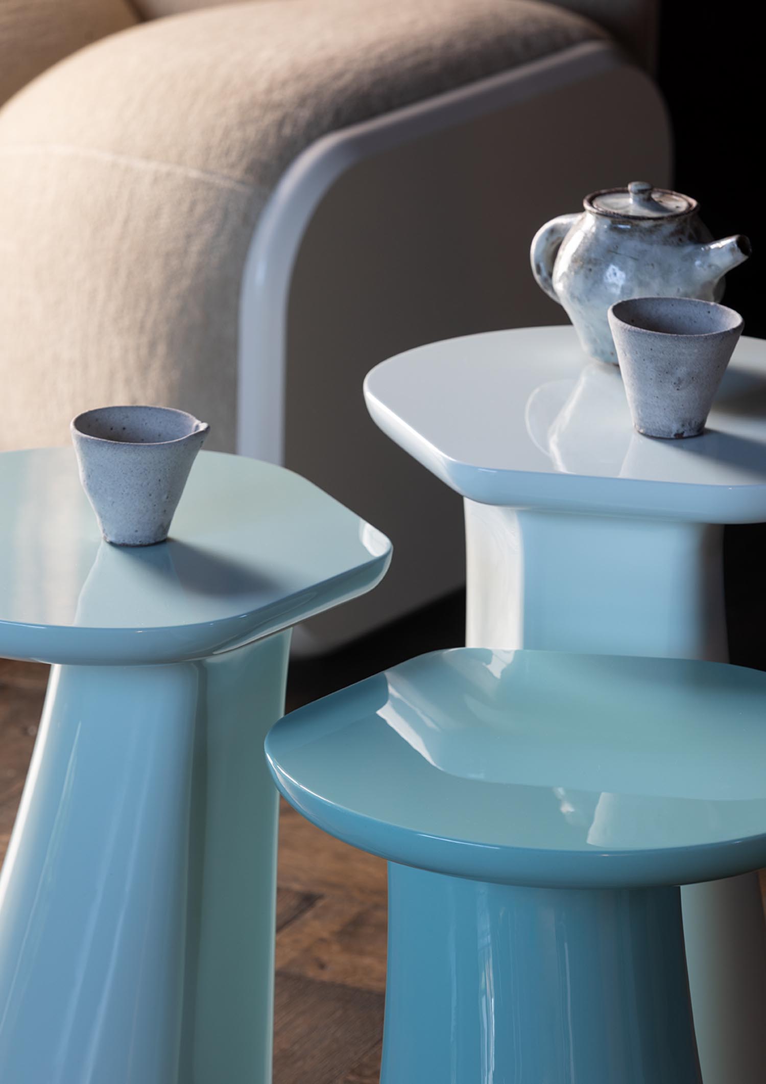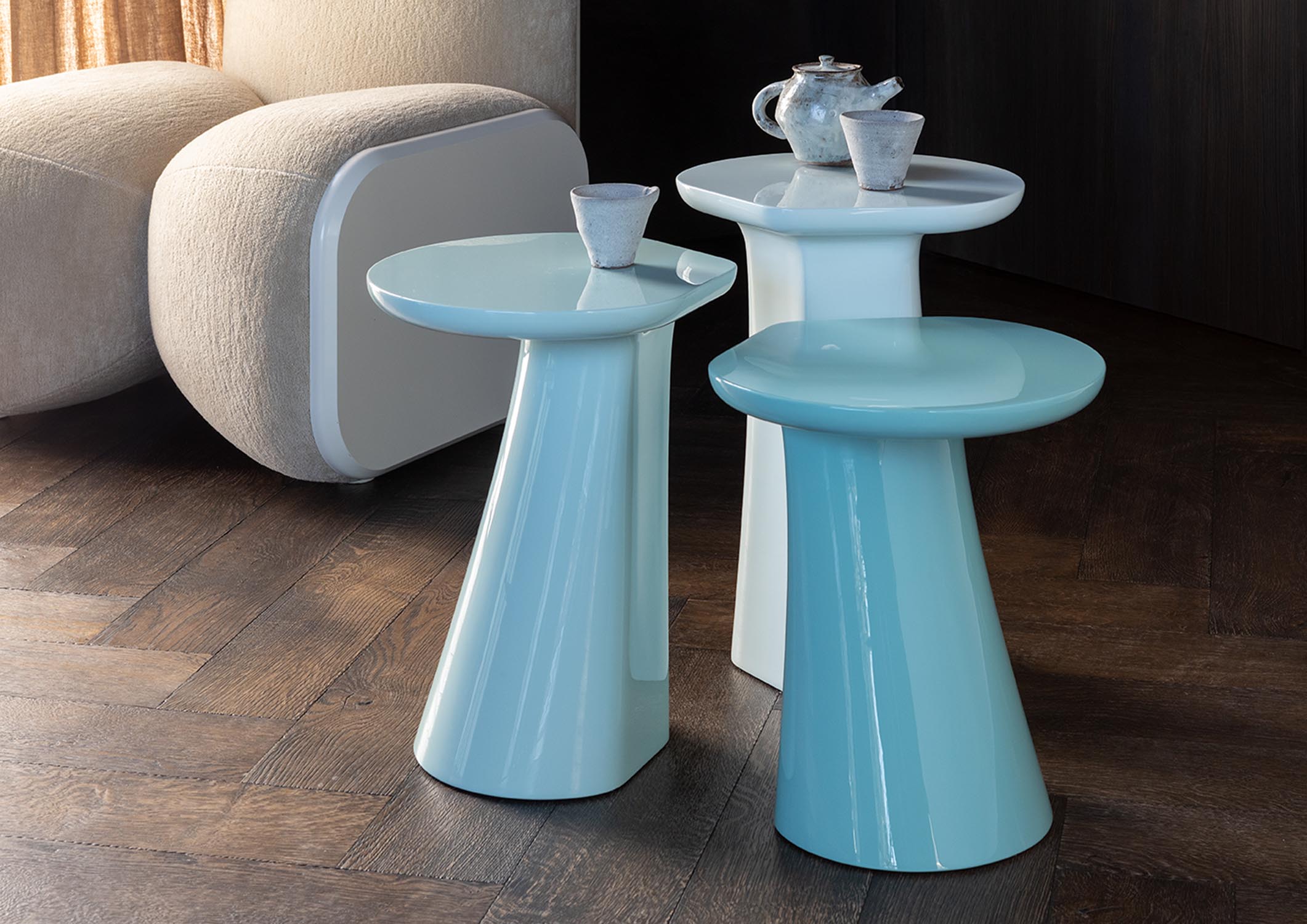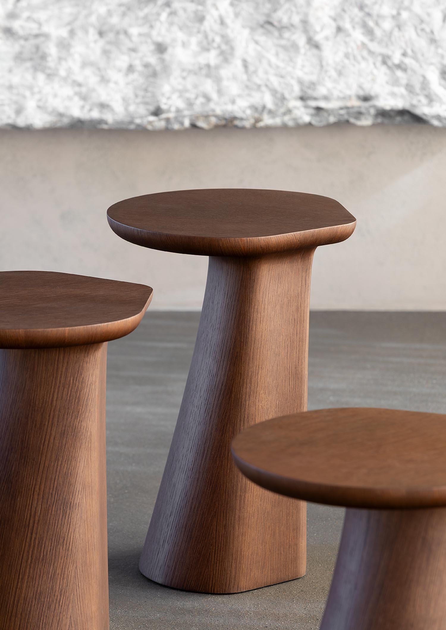 SHIFUMI, conceived by RDAI, explores a subtle balance between structure and movement. It is a collection of tables designed as a cohesive whole, where the precision of the lines engages in dialogue with a freer, almost organic form. Each tabletop suggests a petal. A simple, legible shape that repeats and echoes, gradually composing a landscape. Play is at the heart of SHIFUMI. Available in three heights, the tables come together instinctively. They draw close, overlap, or drift apart, forming ever-changing compositions. Whether grouped as a central cluster or placed as accents, they adapt effortlessly to both space and use. The design’s apparent lightness rests on a true feat of balance. The cantilever, precisely mastered, gives the tops a sense of suspension while maintaining perfect stability. The structure recedes, allowing the form to take center stage. The finishes extend this language. Oak veneers in deep tones or colored lacquers, whether matte, satin, or gloss, accentuate the contours and define the character of each composition.