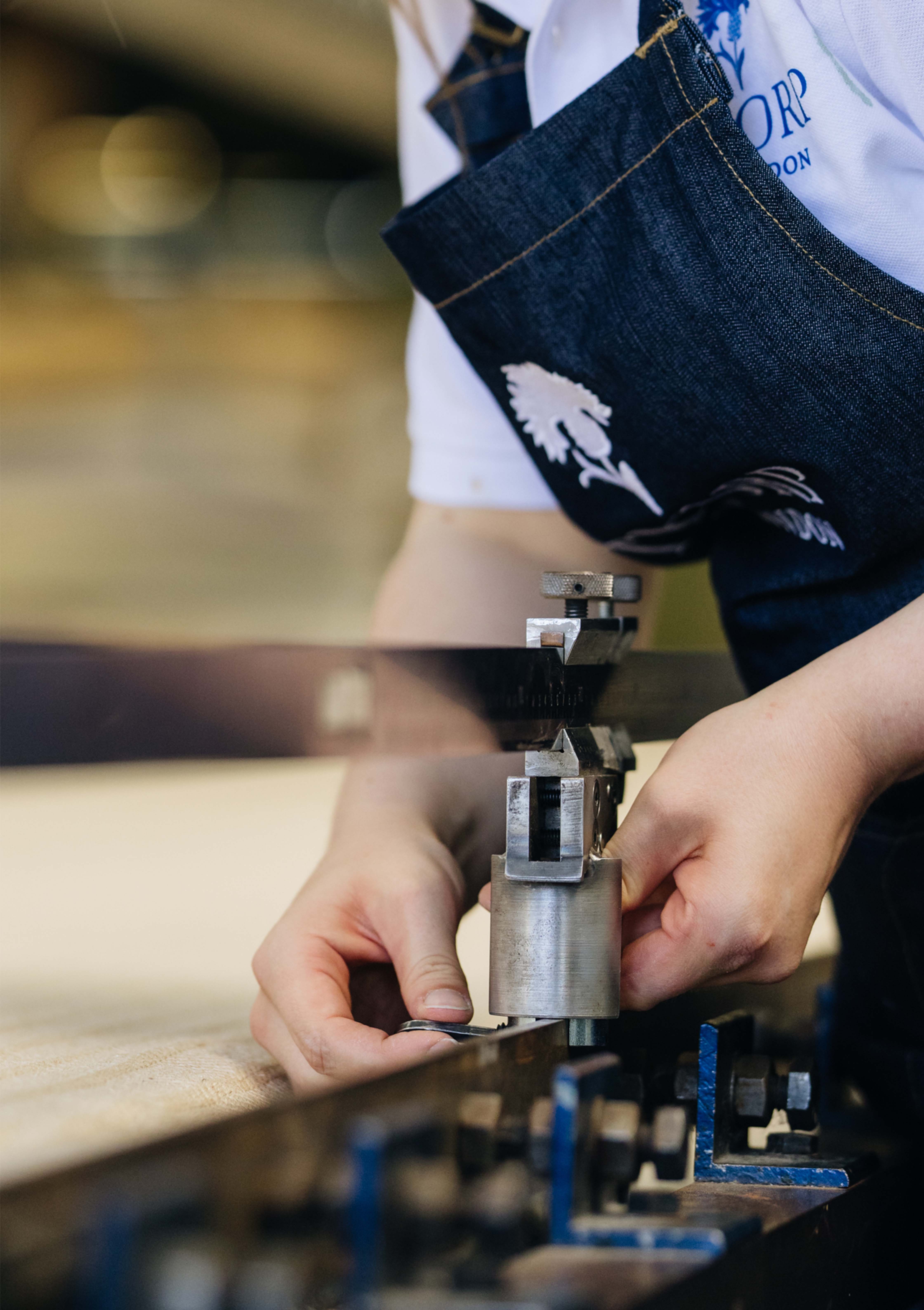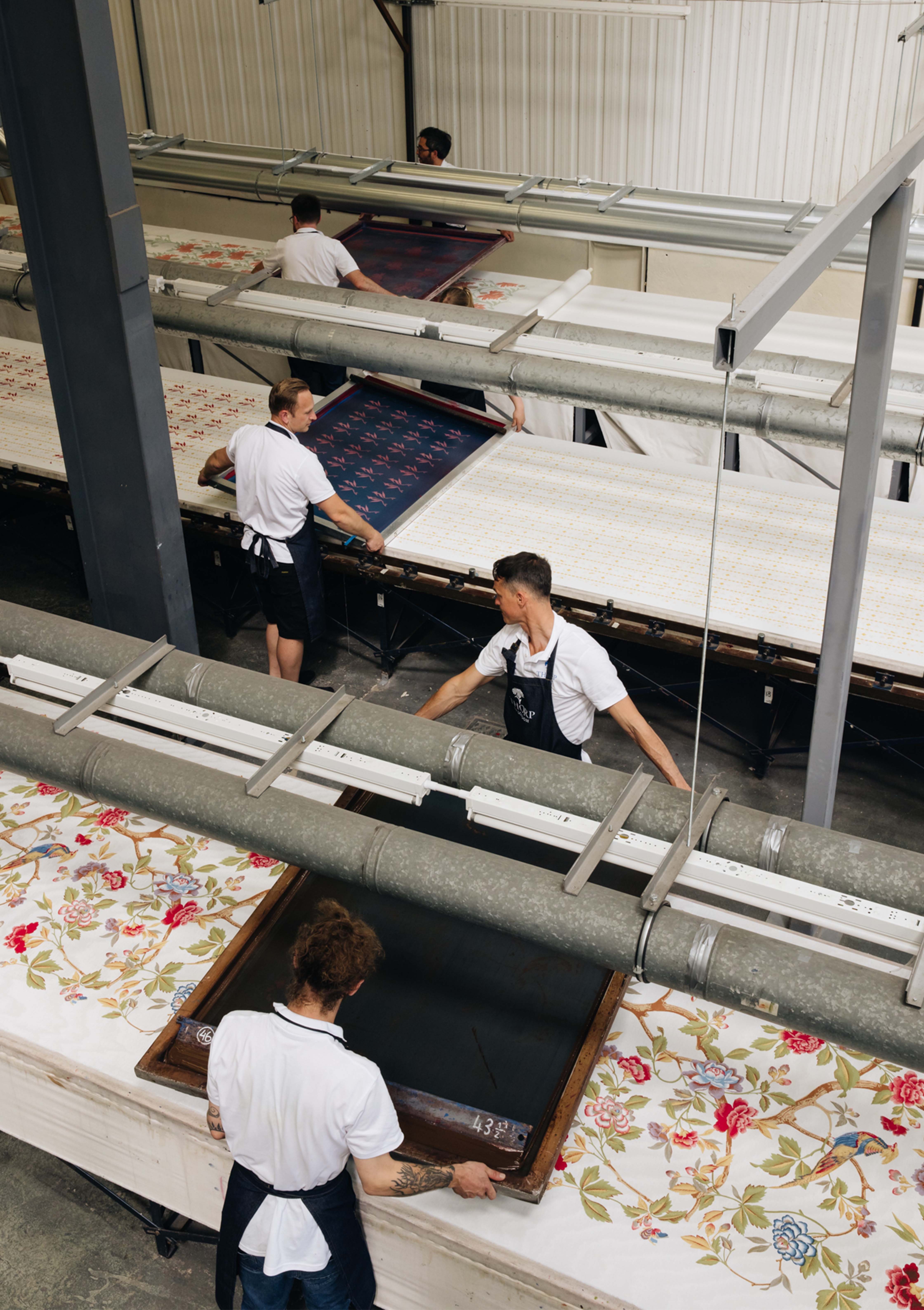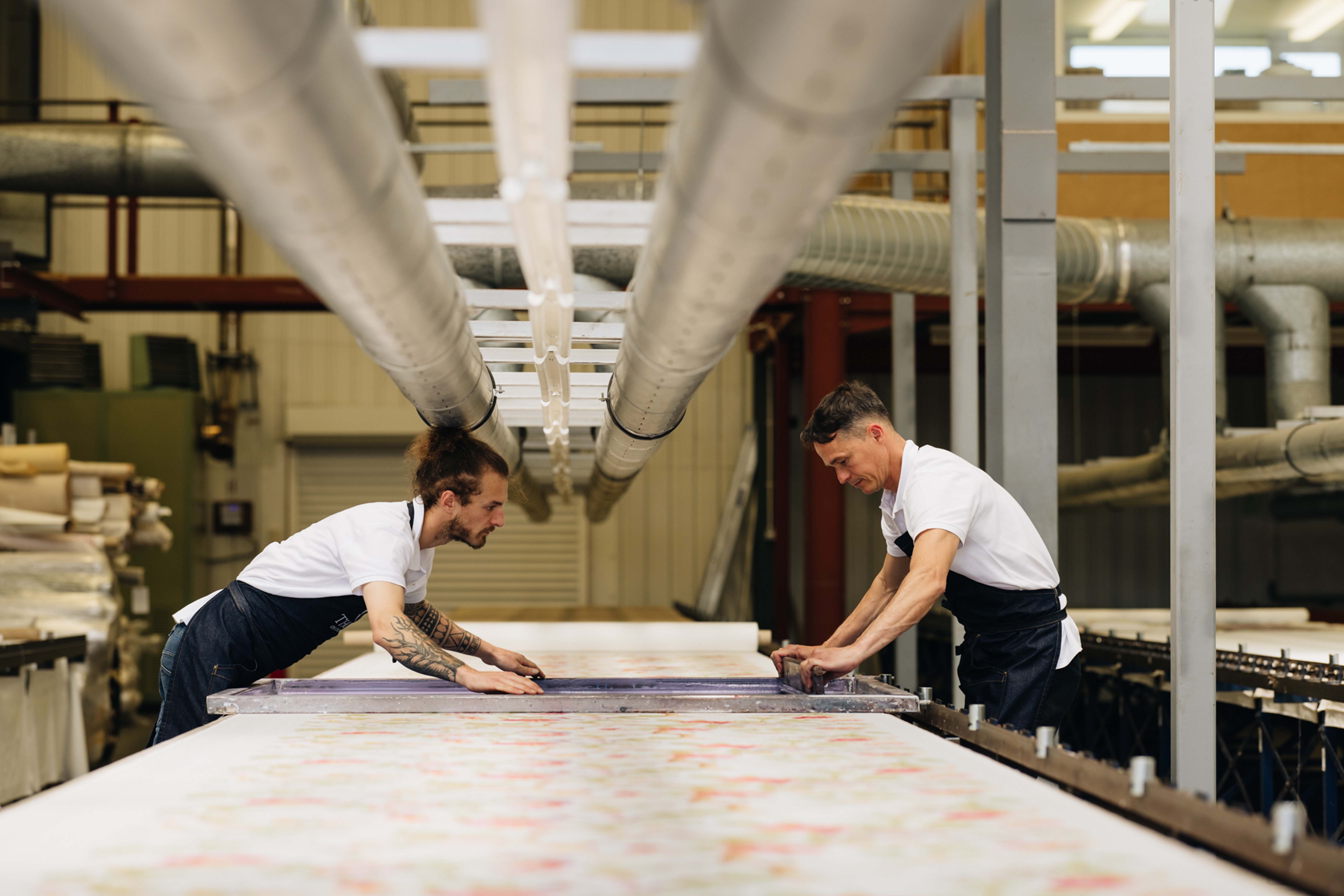 For Marcello, Nicole and Jordan, each color application and precise action is a form of dialogue with the material. Every ground has its own character and sensitivity. Every color is assigned a screen, used like a stencil that constructs the design. Each pattern is assigned a squeegee, a tool that is soft or hard which allows the paint to be drawn across the frame. The angle and pressure used in pulling the squeegee plays a crucial role in capturing the detail and quality of the print.