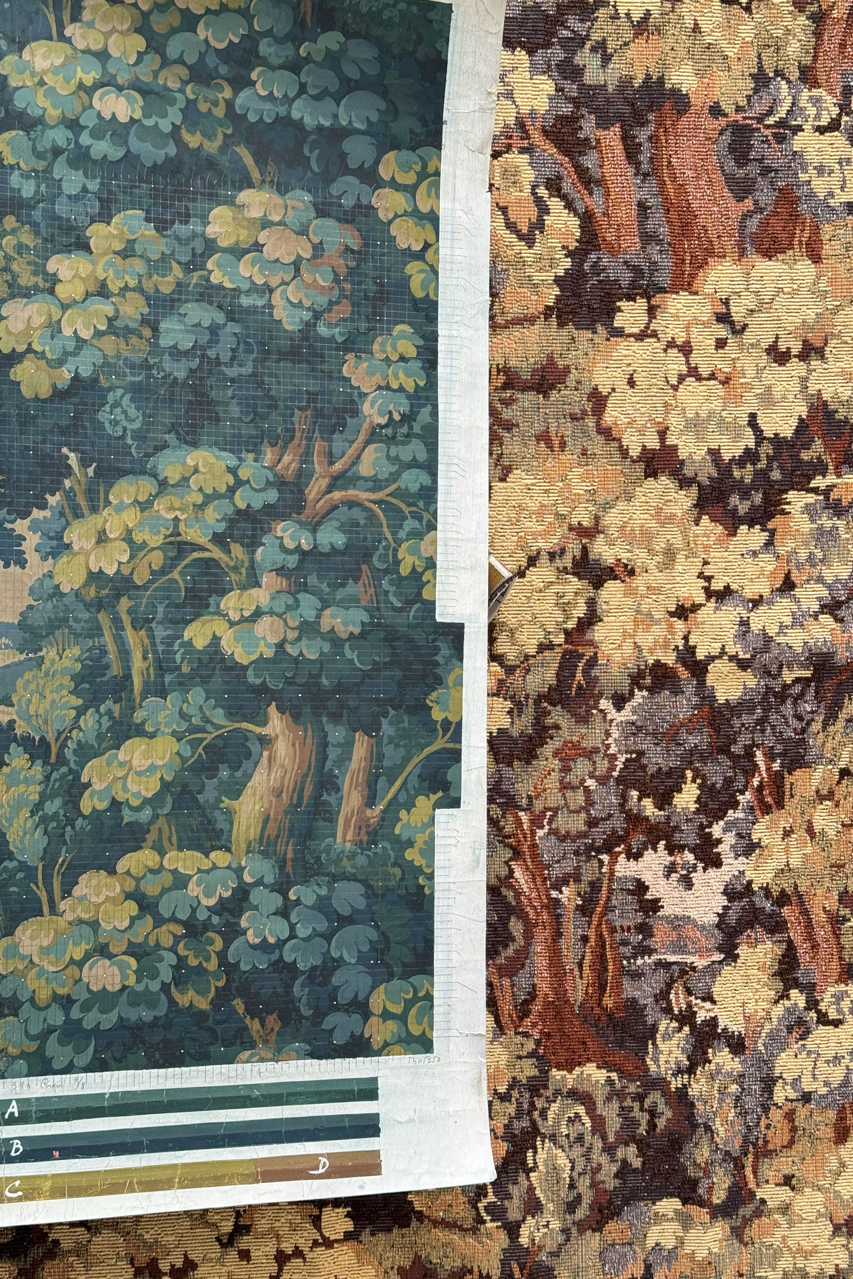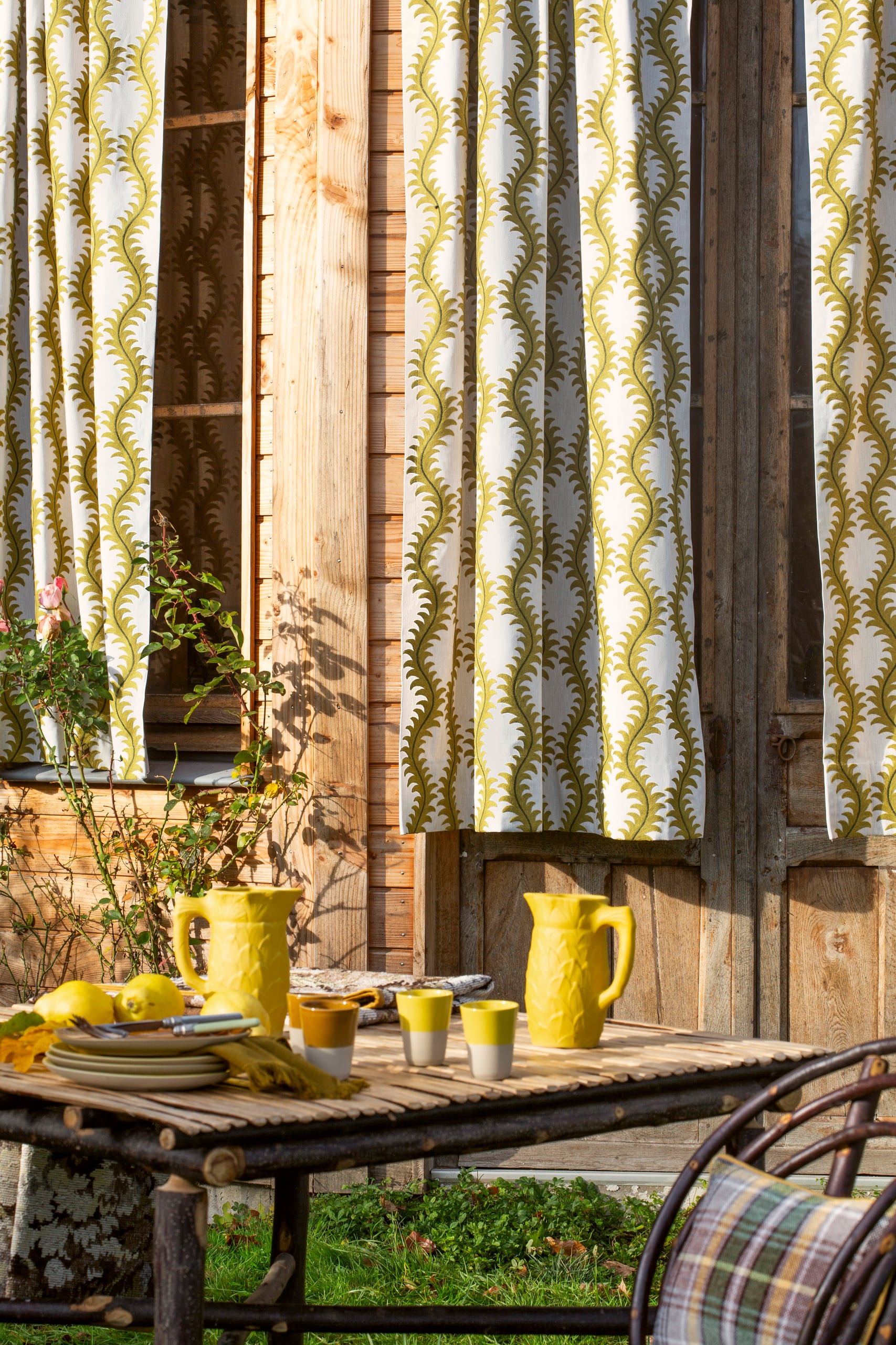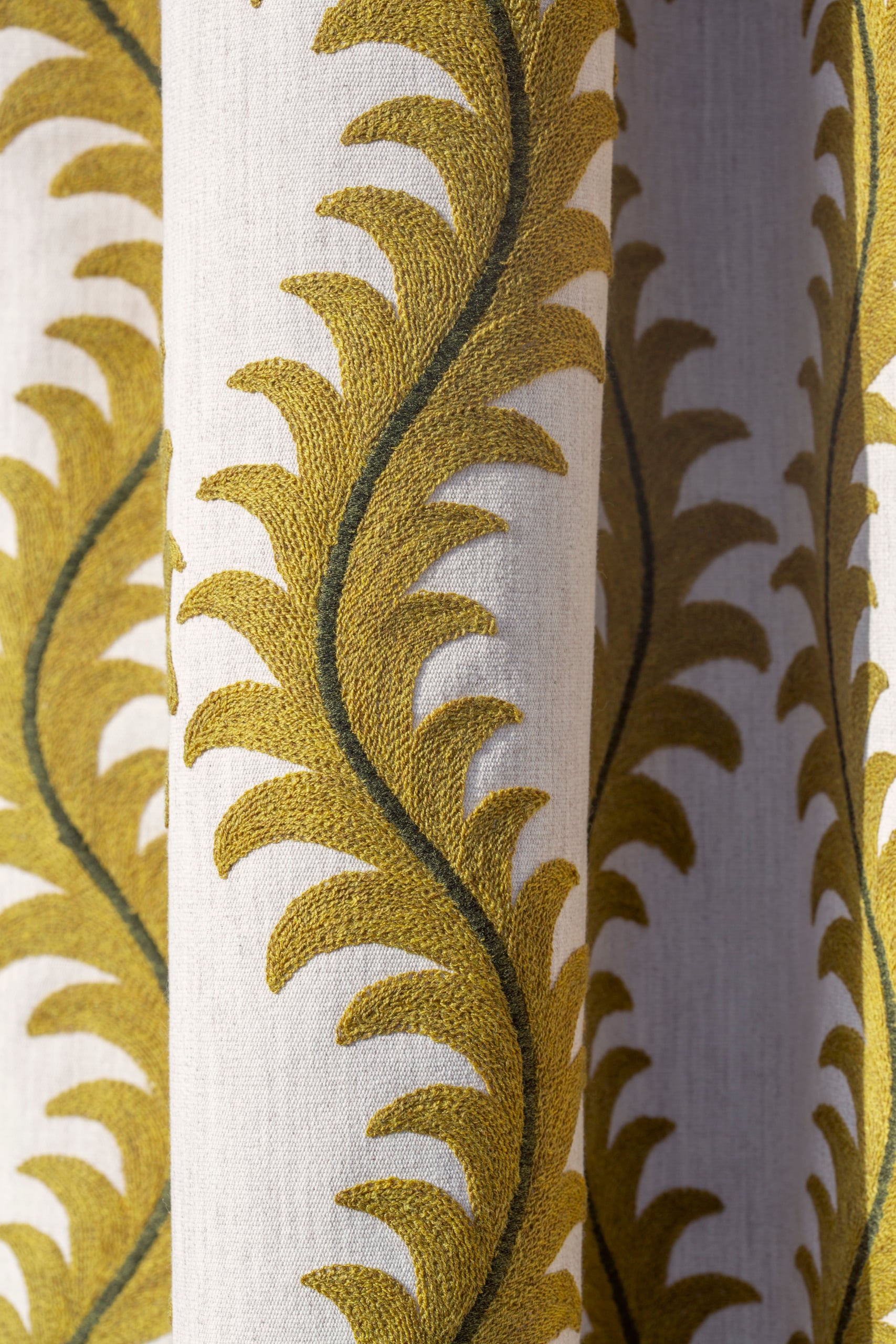 ALENÇON is the first verdant tapestry with indoor-outdoor performance. It surprises with its scale and textured weft threads, which give it the character and depth of very large designs. It comes from an archive dating back to the early 20th century.