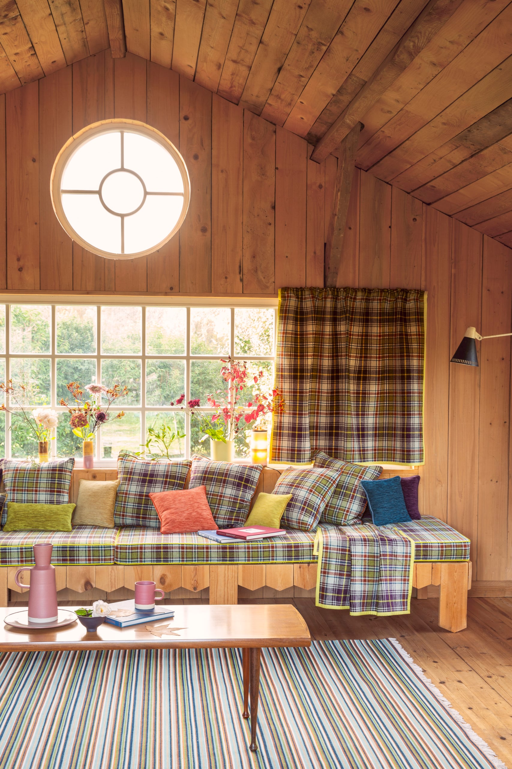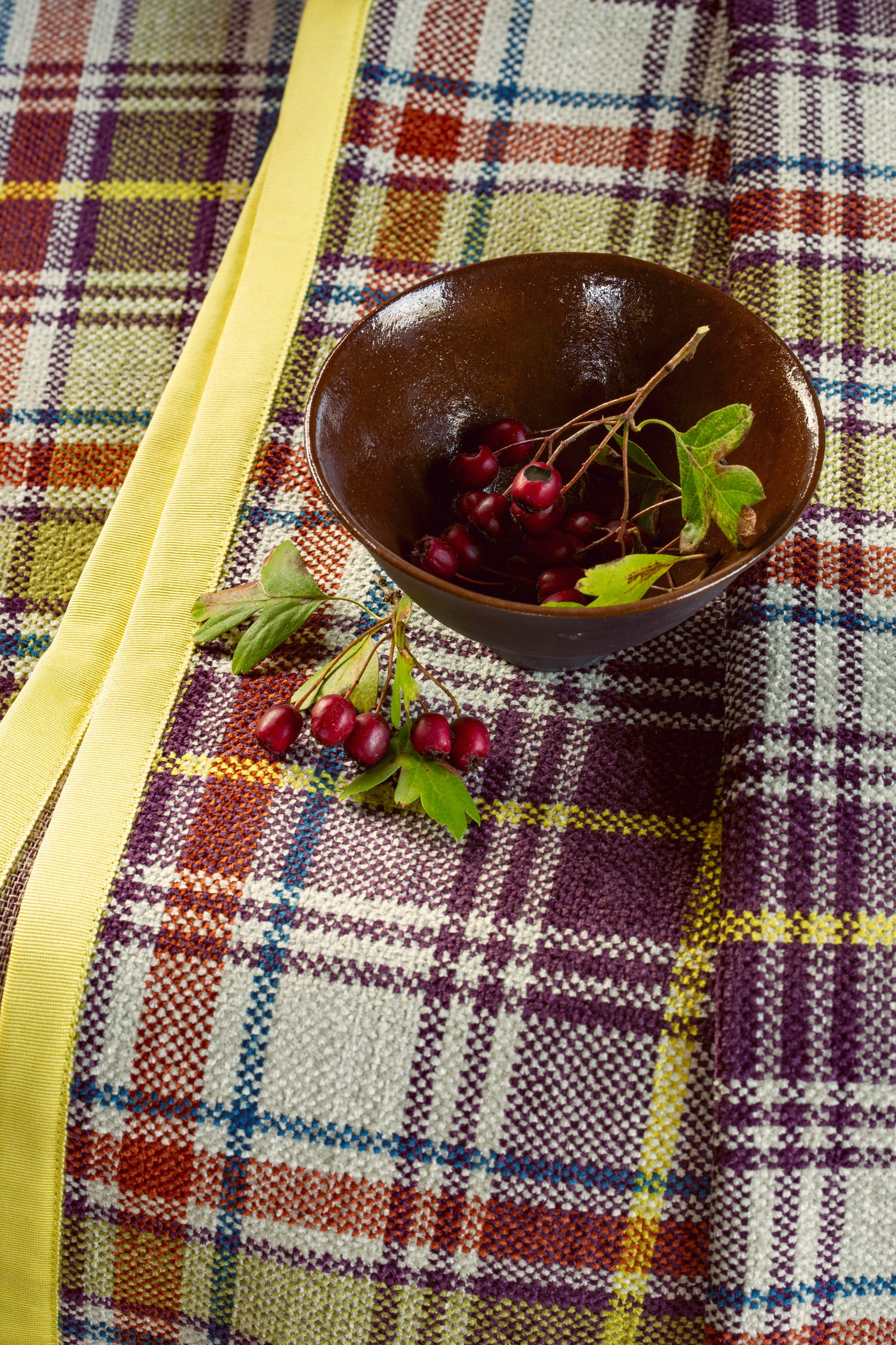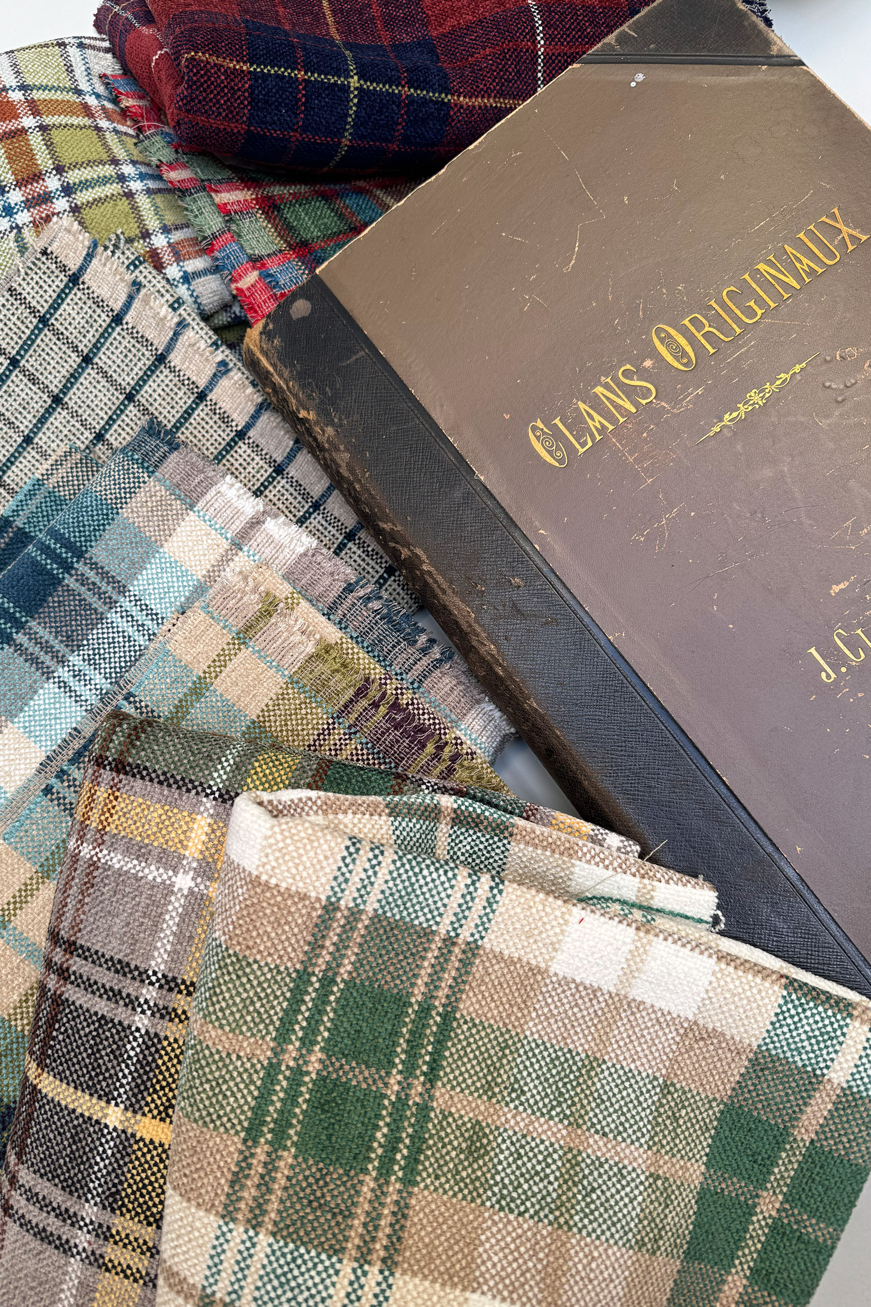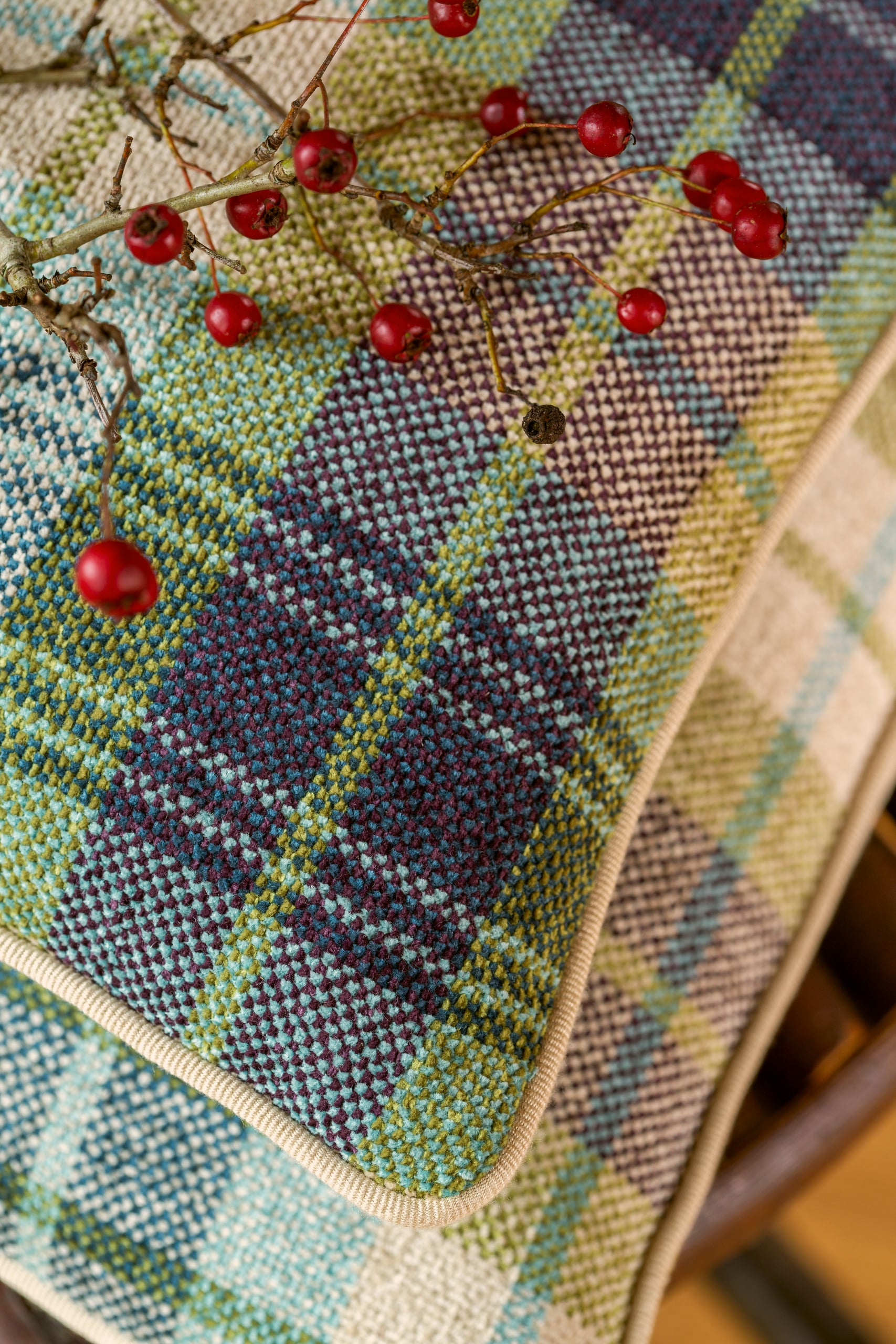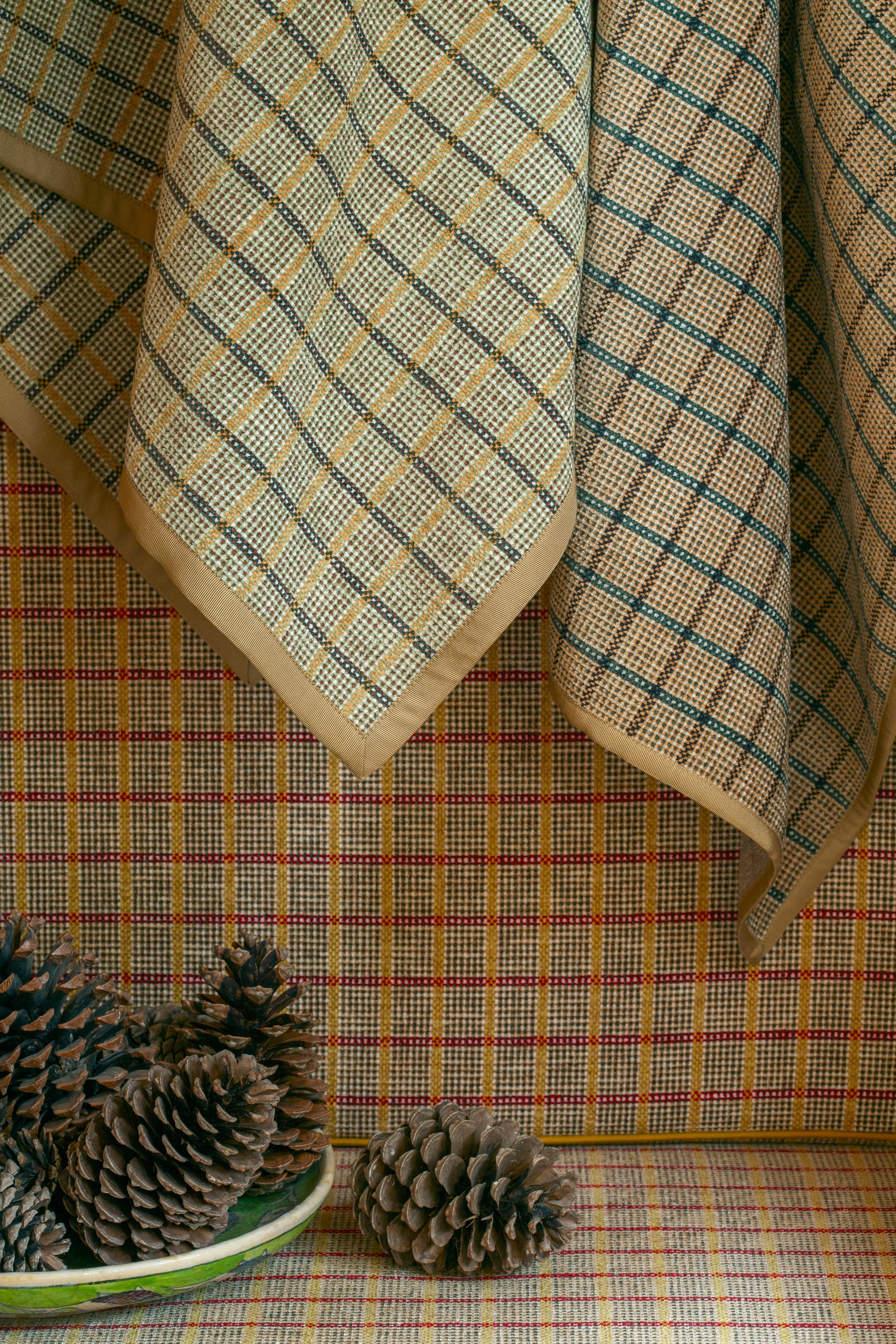 The collection also includes tartans and stripes inspired by a book on Scottish clans. Six to eight selected patterns were woven in chenille yarn, offering a soft touch combined with excellent durability.
