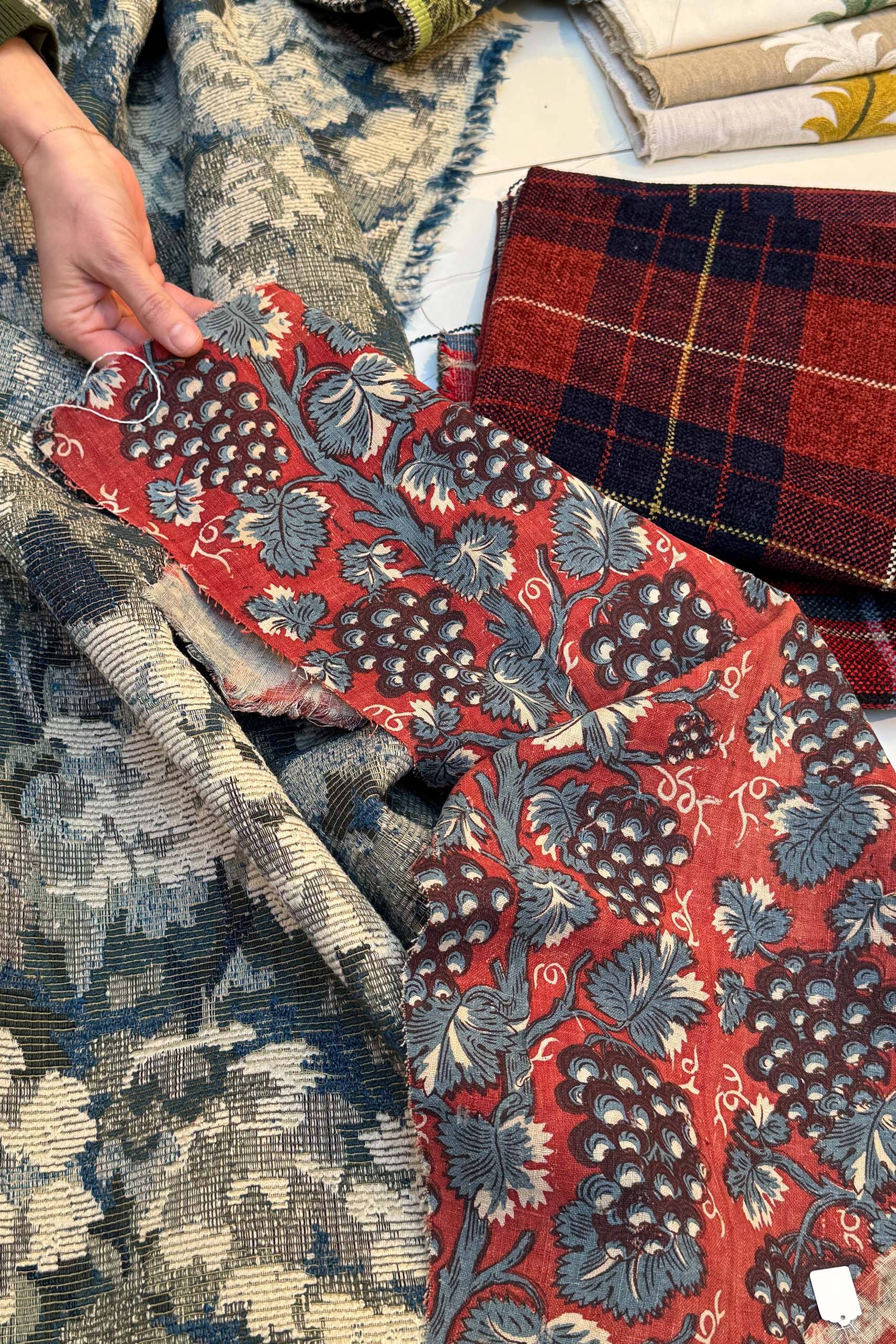 The collection reinterprets historic motifs, including foliage, tartans, and grape clusters, within a deliberately “indoor” palette. Although designed for outdoor use, these fabrics can also be used indoors, offering a natural and elegant finish.