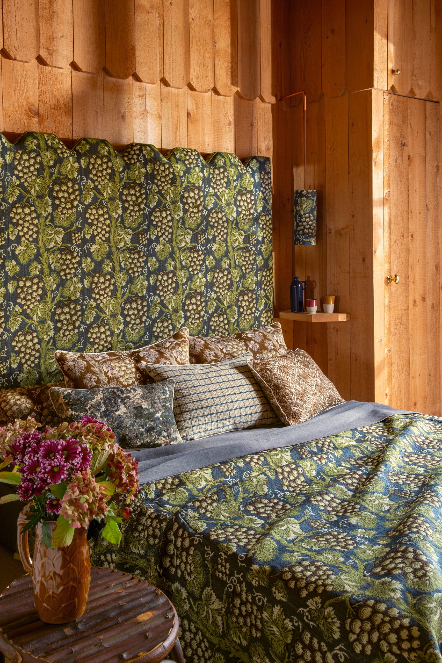 Reinterpreted greenery, stylised grapes, rich tartans, graphic patterns and stripes are displayed on a generous scale and in a palette that is both woody and comforting.