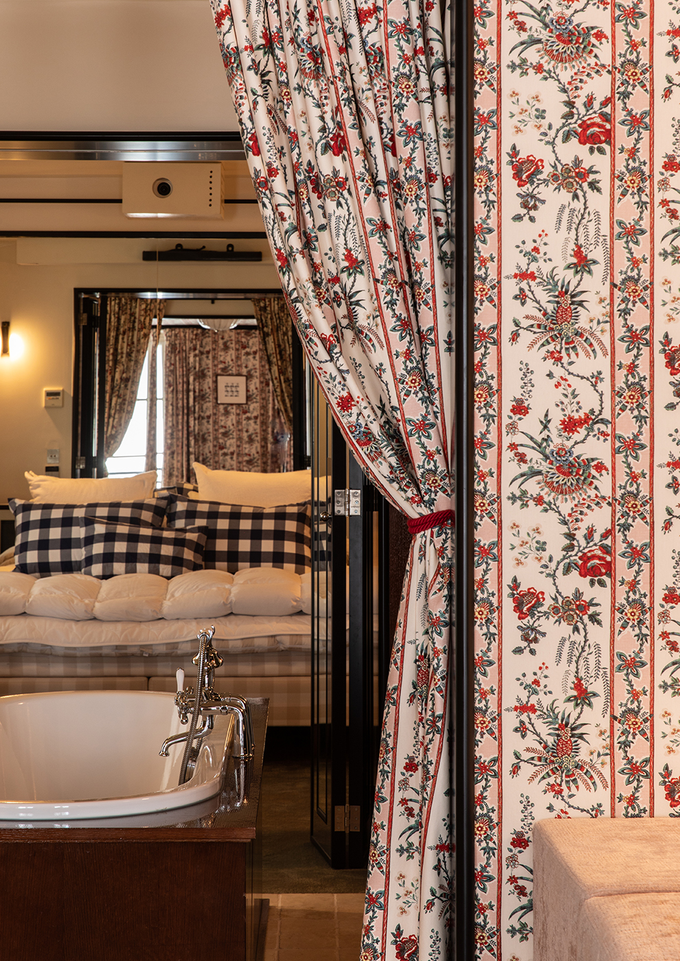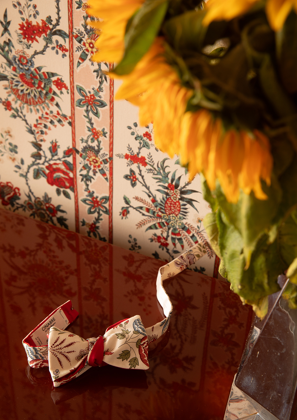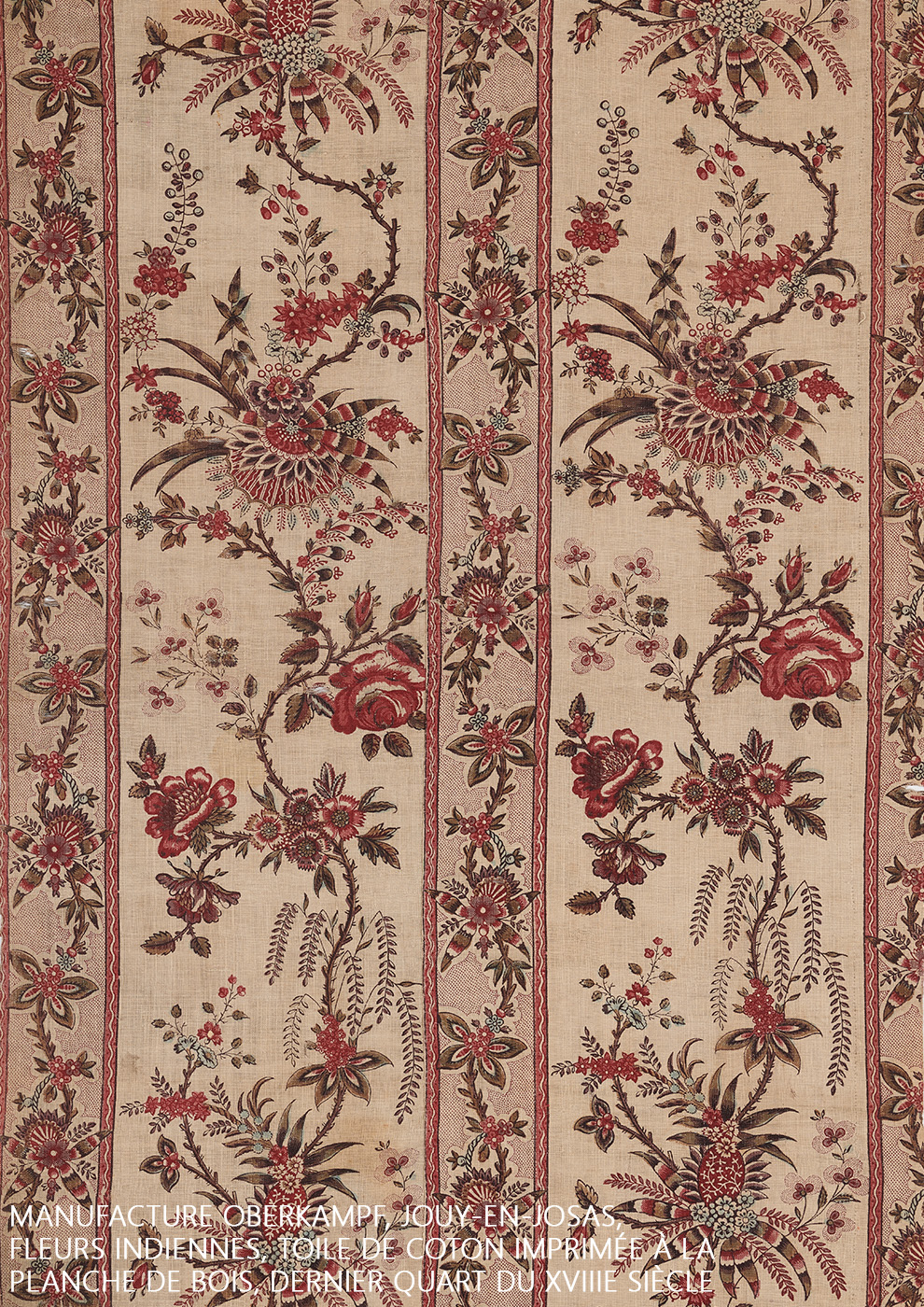 Exclusively for the Cinabre Suites, La Maison Pierre Frey has opened its archives and reissued two prints dating from the 18th and 19th centuries: The first reproduces a polychrome toile de Jouy, printed by Oberkampf around 1785, renamed REVERIES INDIENNES.