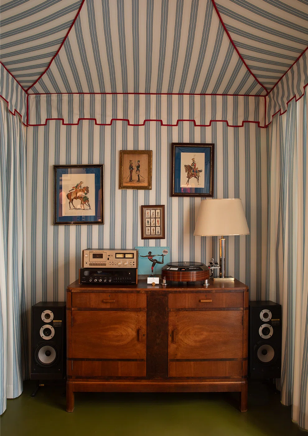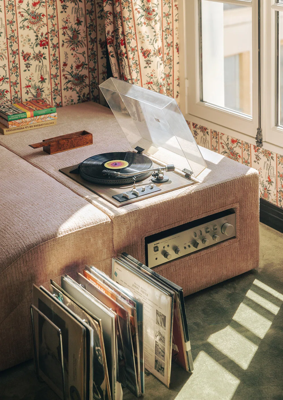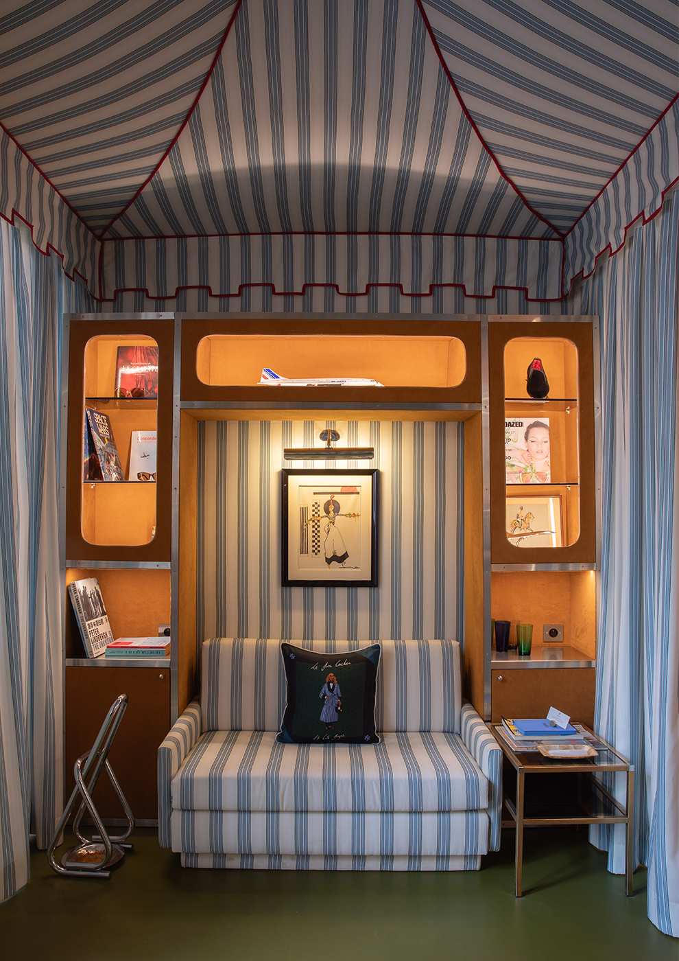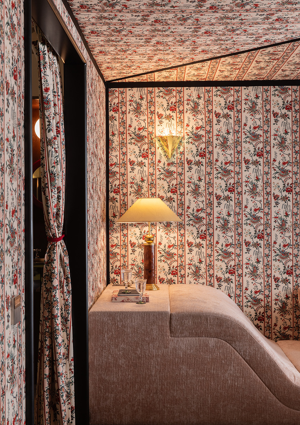 This hybrid space, which celebrates the Parisian art of living, is spread over four floors comprising a boutique, a design studio and two private suites. The interior design by Necchi Architecture focuses on a sophisticated and refined vintage style.