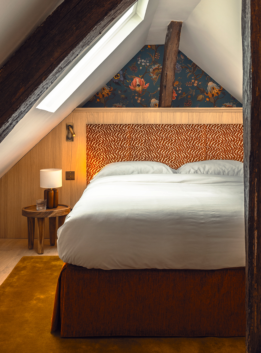 Pierre Frey, selected for its custom-made expertise, has provided its collections of fabrics to decorate the rooms in the various flats. The Toiles de Tours MINI LEOPARD, FAUVE and KENYA placed on the headboards add a subtle touch of boldness to the bedrooms with their stylised animal motifs. BALTAZAR velvet adorns the bedroom windows, giving the rooms a warm elegance. Like an invitation to get away from it all, Maison Bohème is a unique showcase of subtly retro inspiration.