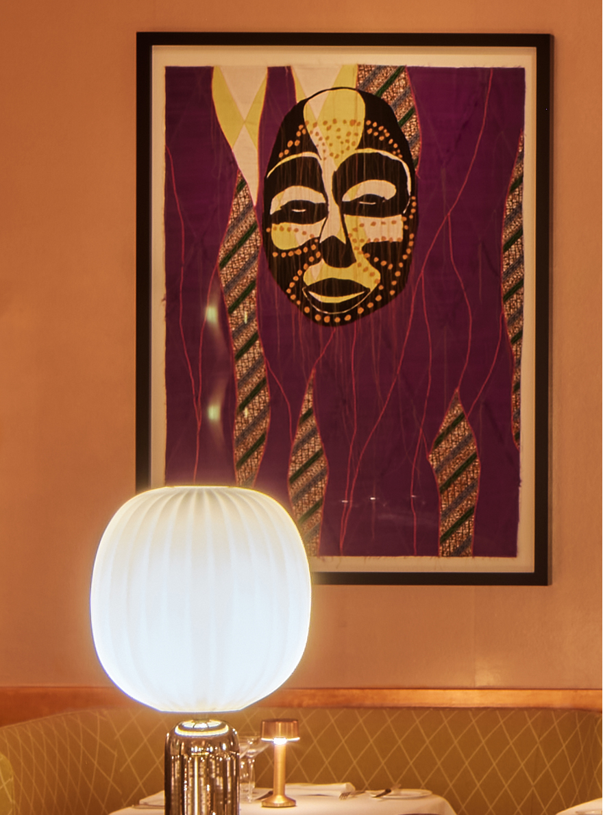 This fascinating place dedicated to art, design and food honors textures with the use of the LOSANGE Toile de Tours edited by Le Manach.