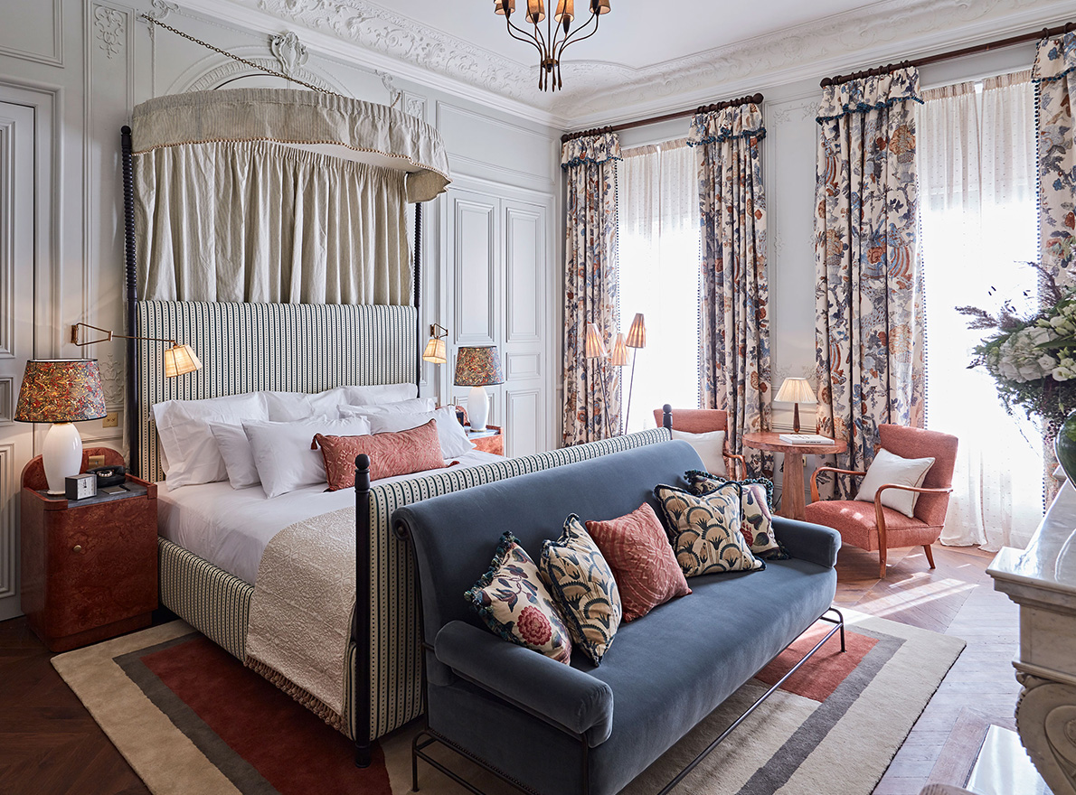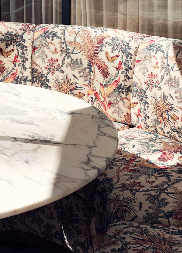 The production of custom-made furniture was also entrusted to Braquenié's manufacturing workshops, which used their know-how to make the slipper chairs for the cabaret room. The MARIGNY carpet also recalls the vermiculated blocking of one of the façades of the Louvre Museum. A cosmopolitan place with a heterogeneous design, the Soho House is undoubtedly one of the best kept addresses in the capital.