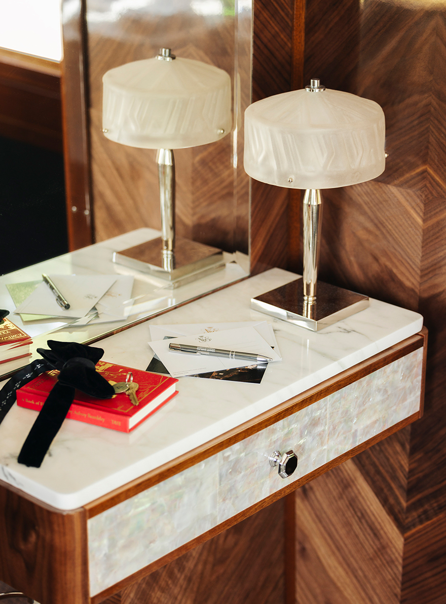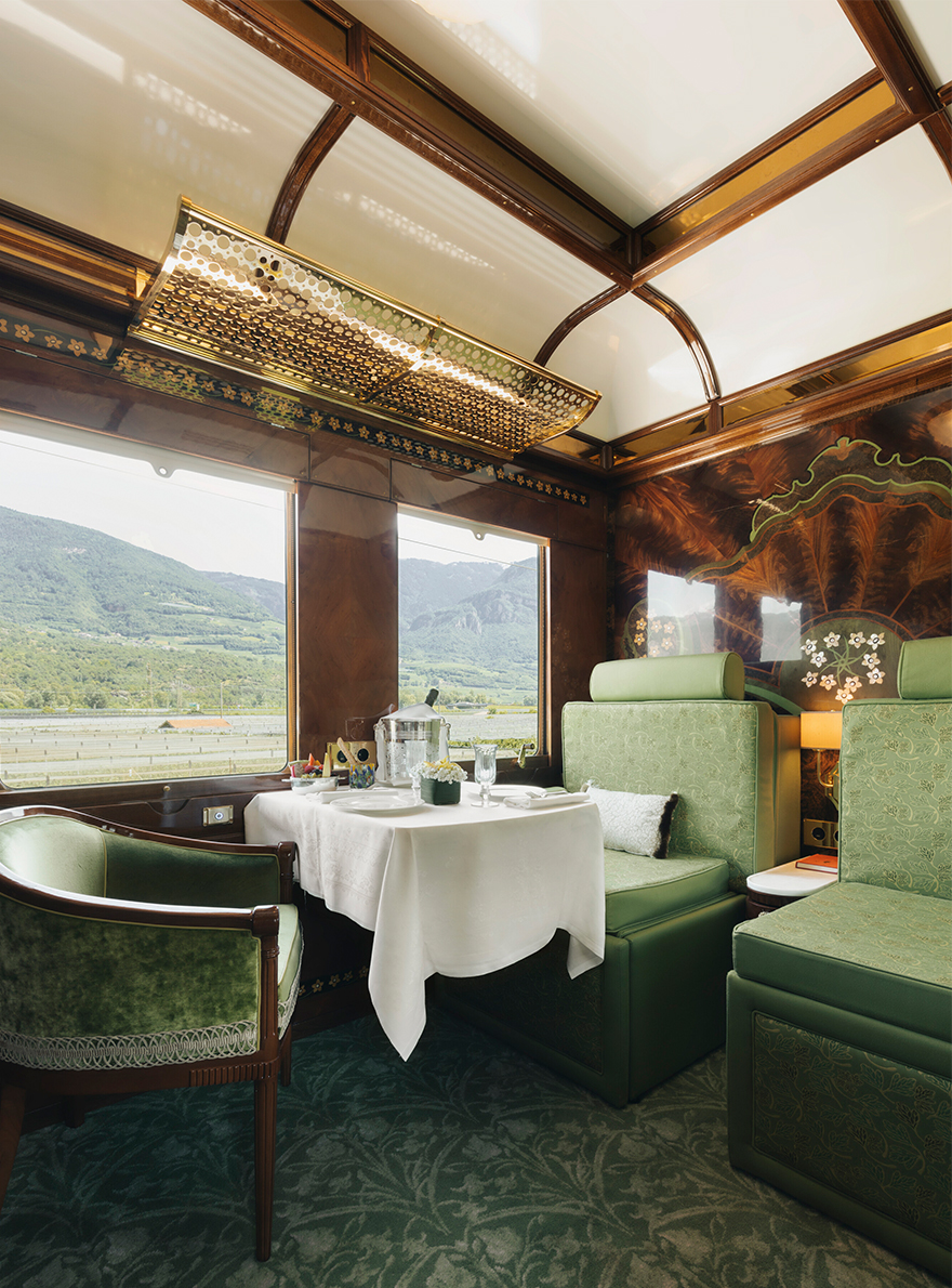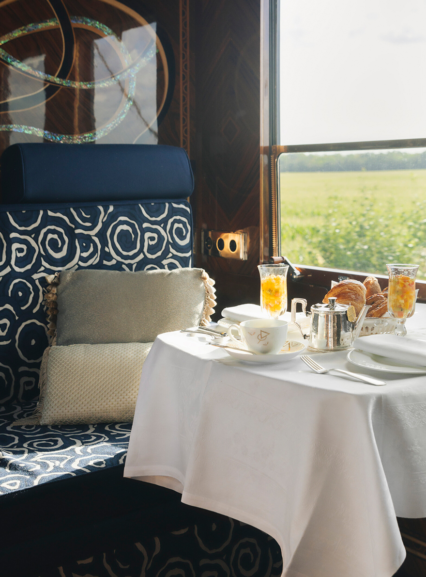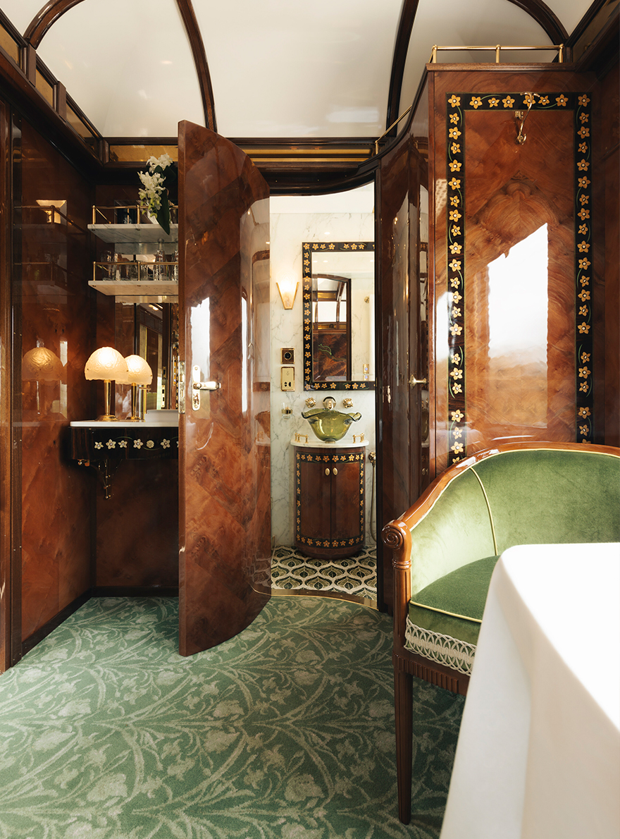 Pierre Frey, chosen for its custom-made expertise, has contributed to this exceptional project by providing a selection of velvets such as CAPRI II, LUIGI, ENZO and BALTAZAR, which are used to delicately cover the various seats and windows of the "bar car 3674", where epicureans enjoy cocktails and piano music. BIARRITZ, VIRGILE and OKINAWA plains and faux-plains adorn the four prestigious suites, inspired by the fusion of the landscapes crossed by the Venice Simplon-Orient-Express and the Art Deco style.