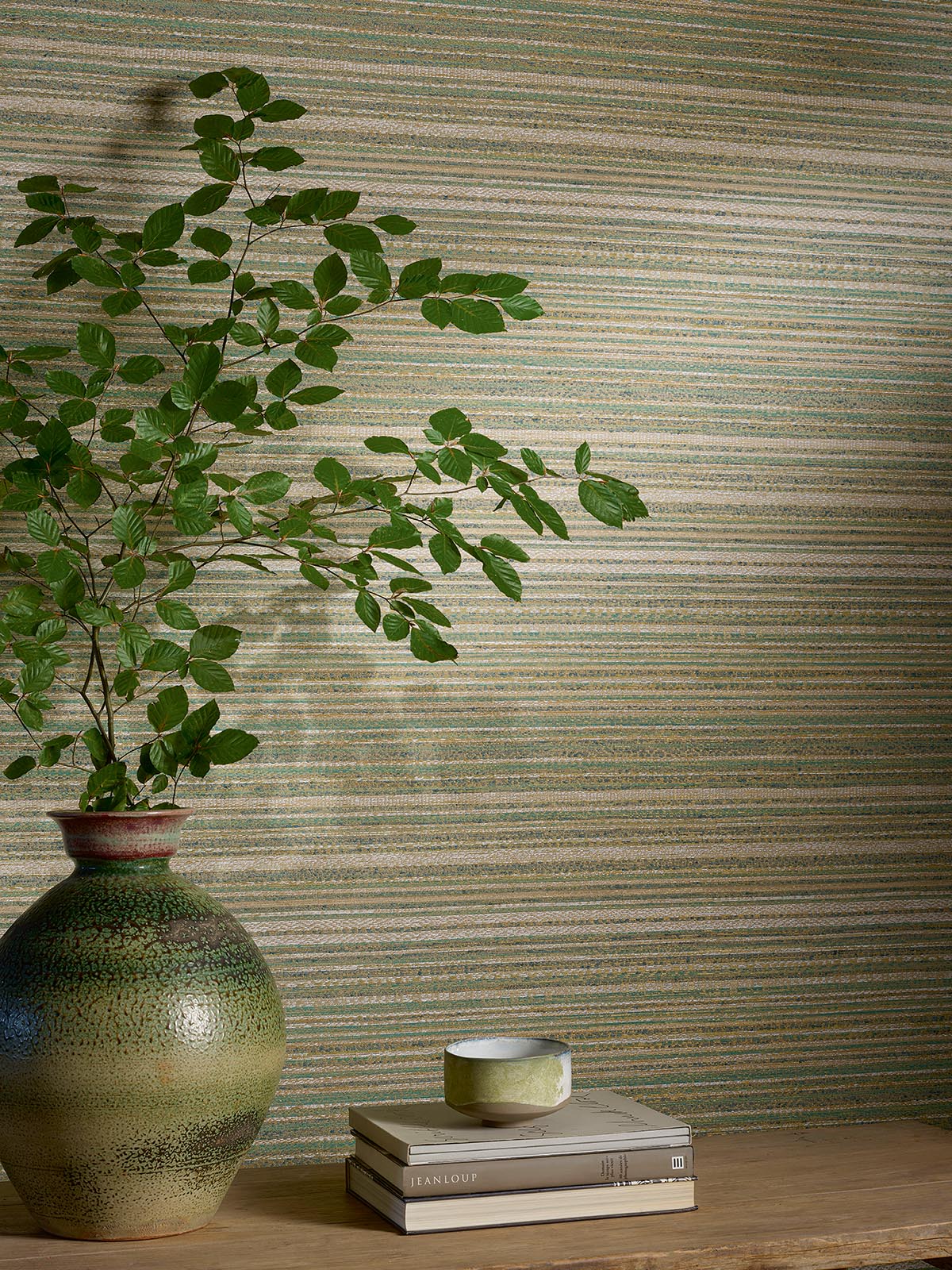 Between the spirit of the bayadère stripe and the material, this wallpaper combines different decorative yarns: matte, shiny, pearlescent and boucle. It evokes the modernity of striped textiles sourced from the four corners of the world.