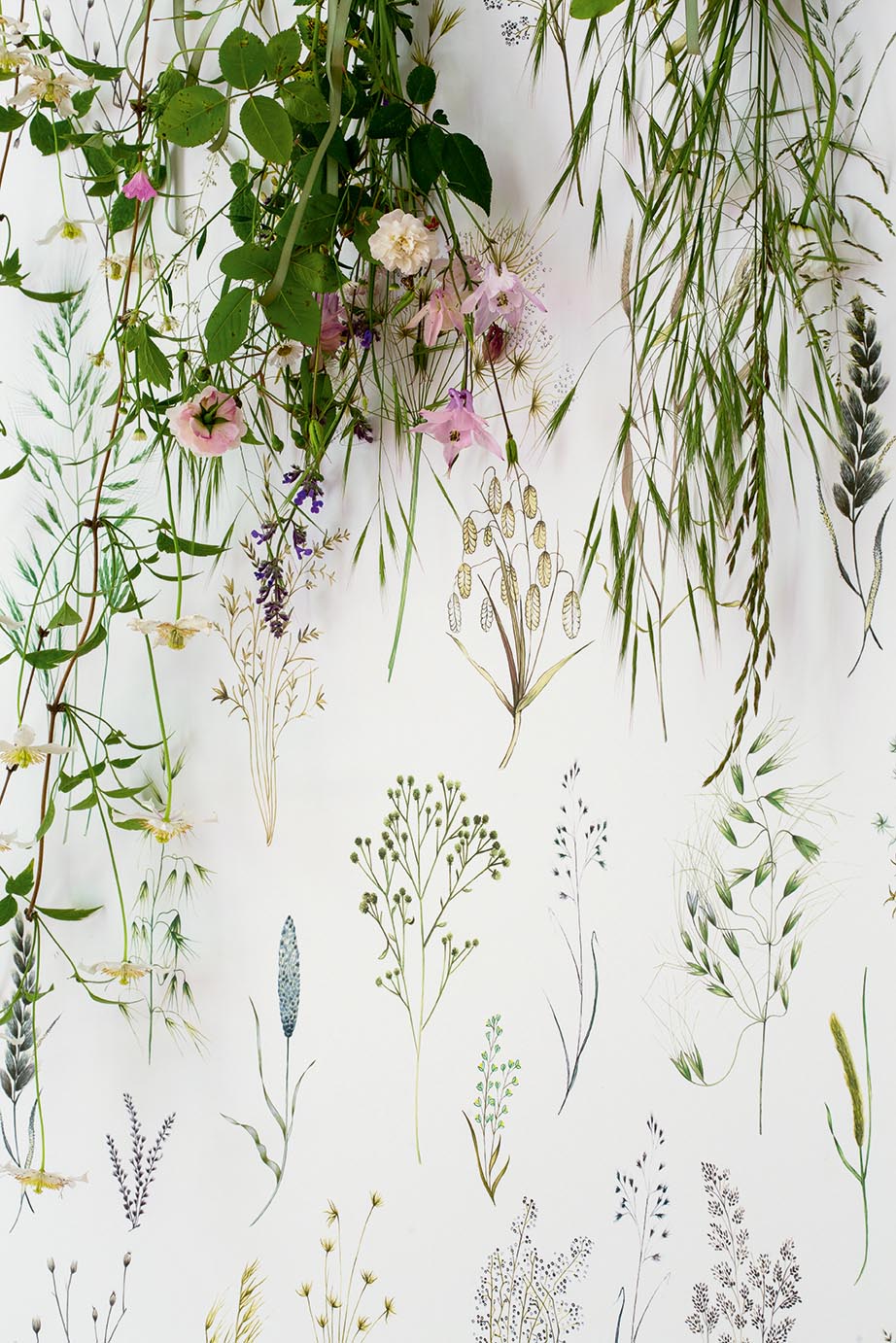 Based on botanical plates, this delicate watercolor drawing poetically depicts a backdrop of grasses in the heat of summer. Printed in large width. Also available in fabric as F3904 LES GRAMINEES and F3932 LES GRAMINEES BRODERIE.