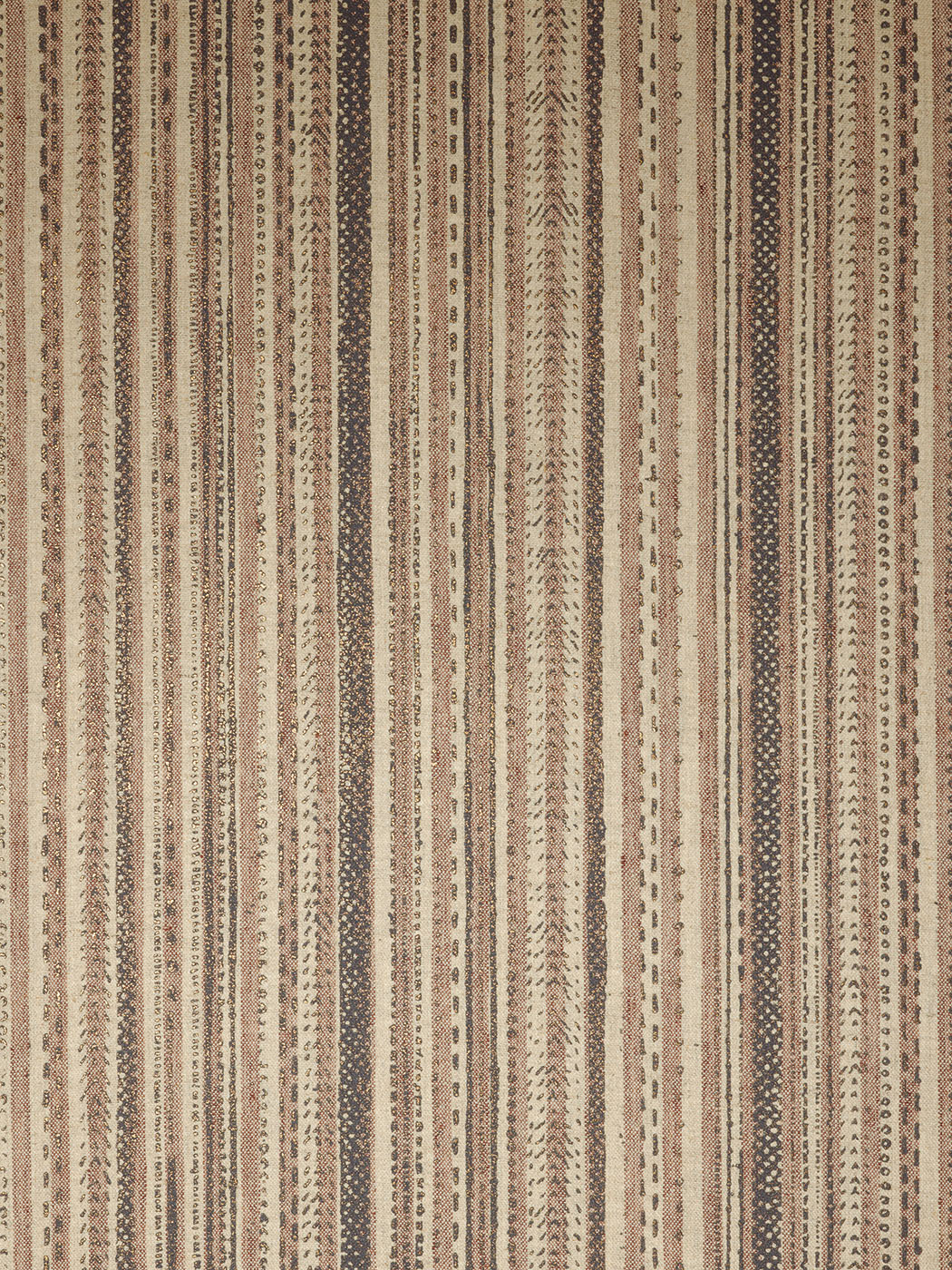 A stripe printed with swelling ink and sublimated with a metallic colour applied in layers, MARONI is printed on a textile backing that is itself striped.