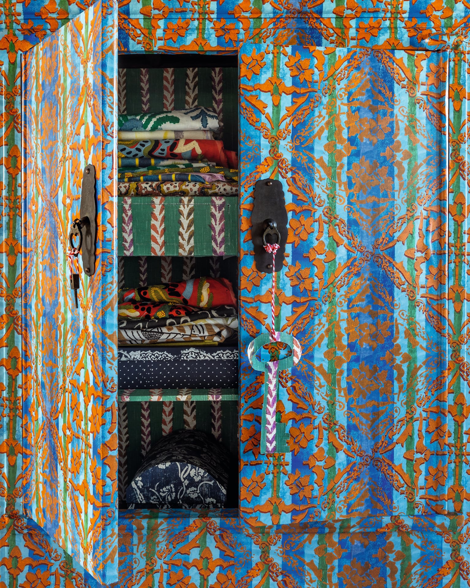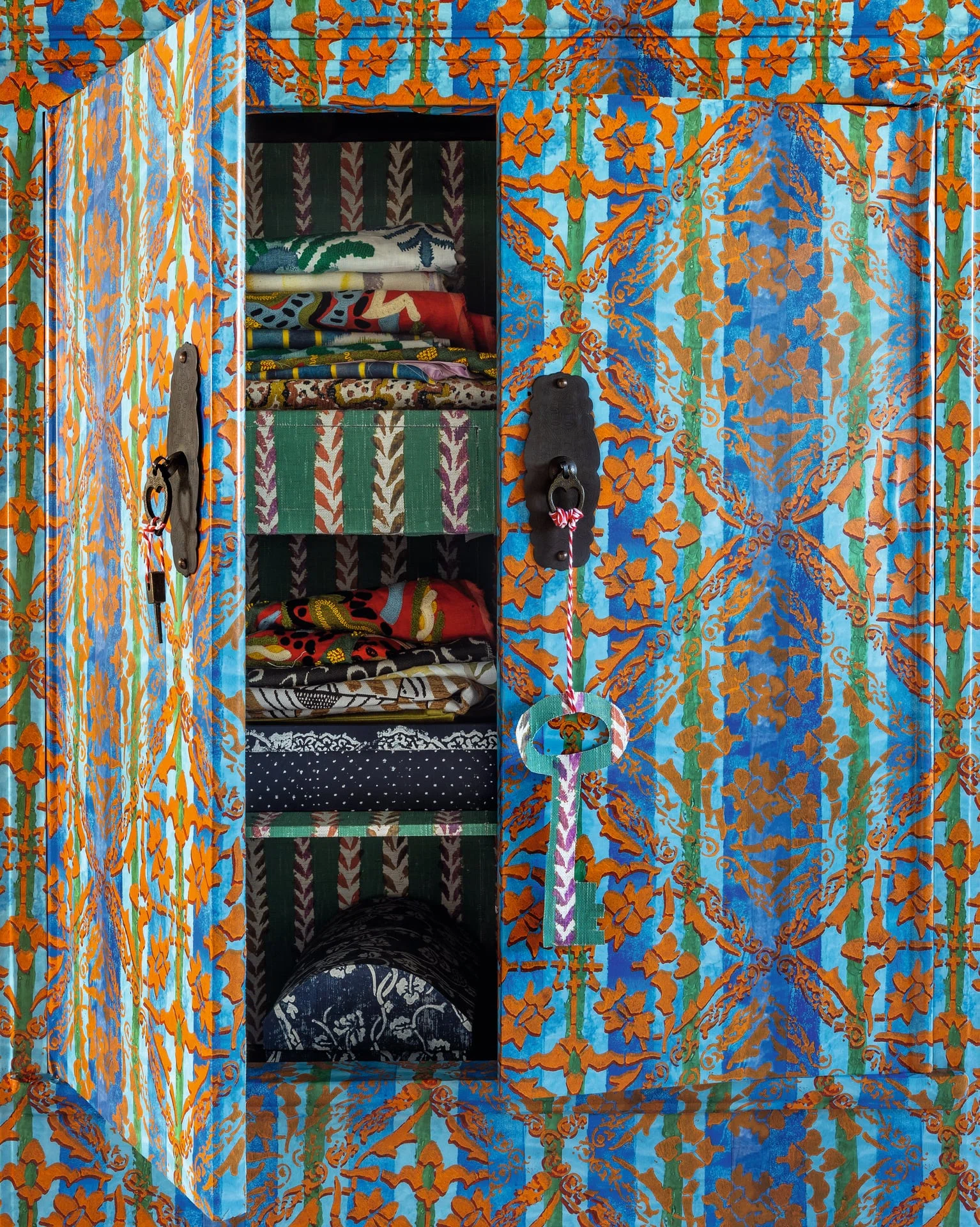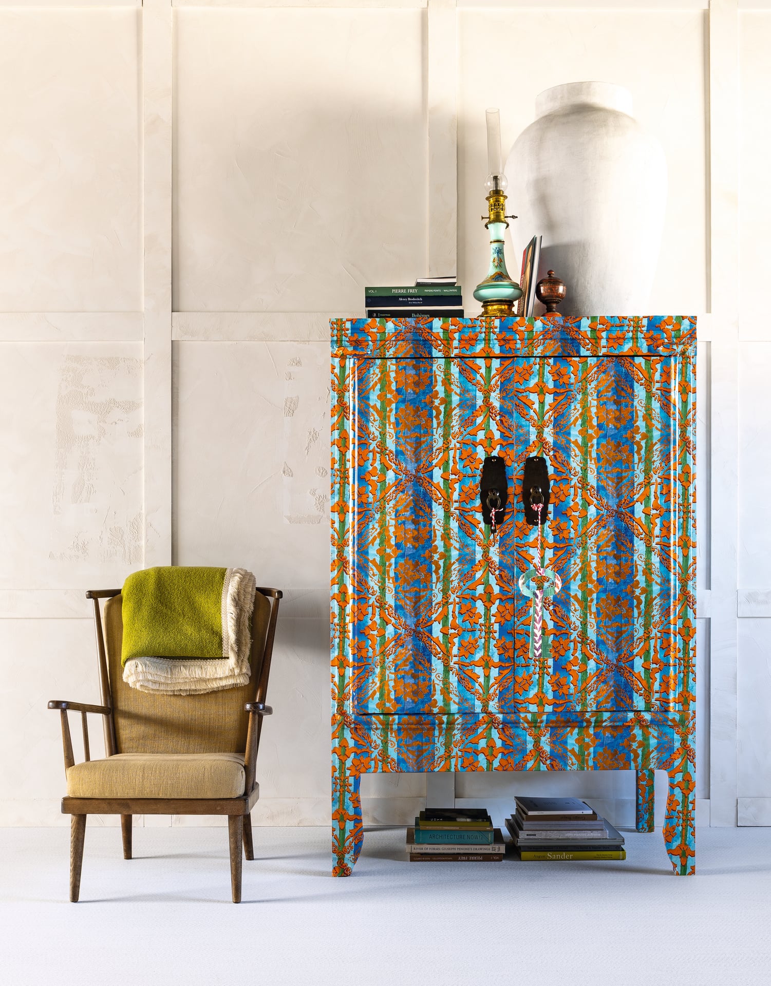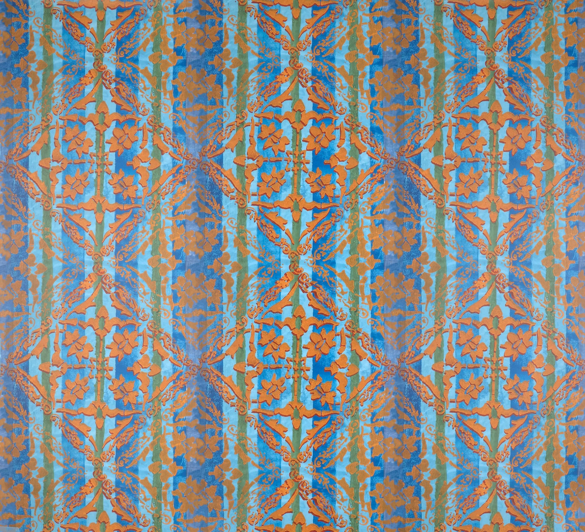 Where baroque grandeur meets contemporary elegance. Isabelle, drawn to this contrast, celebrates both the theatrical and the joyful, paying homage to forgotten frescoes and radiant wallpapers.For her, stencils are far more than a technique: they are instruments of freedom, rhythm, and infinite creativity. Every stencil is crafted in the studio, and faithfully reproduced on wide-format glazed non-woven backing, giving the design its full elegance and presence.
