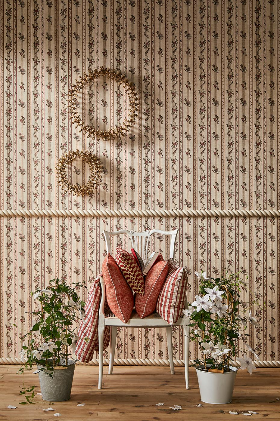 This fantasy, with its blossoming branches, takes its name from the town where one of Sweden's most famous castles is located. It reproduces a delightful cotton canvas printed by woodblock in the second half of the 18th century, preserved in the Maison's archives.