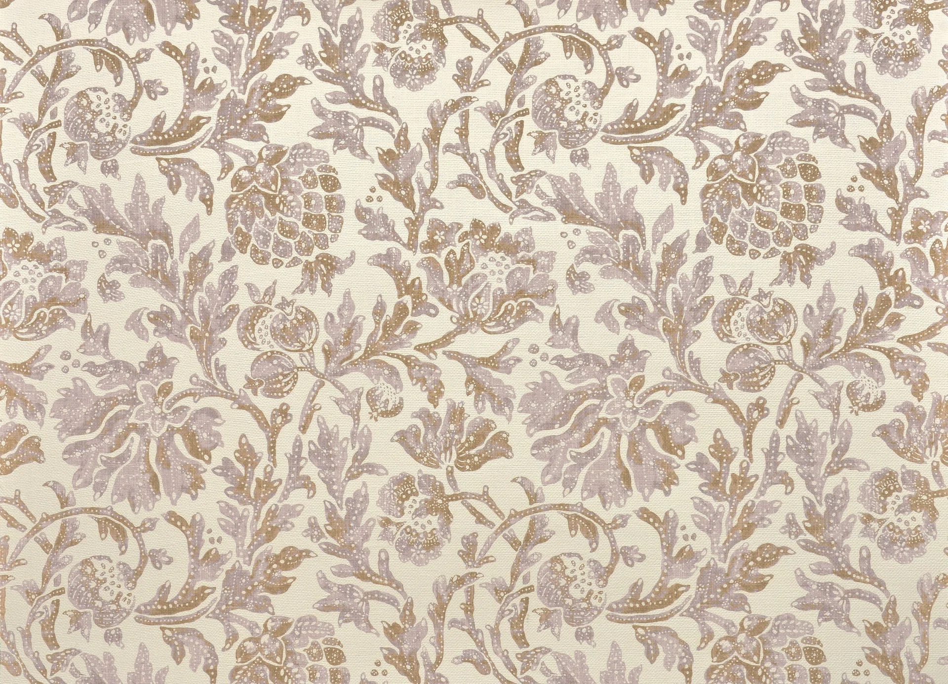 Magnificent jute print, featuring a charming pomegranate design in an antique style. Its matte, handcrafted appearance, combined with its luminous tones, gives this beautiful wallpaper a timeless character.