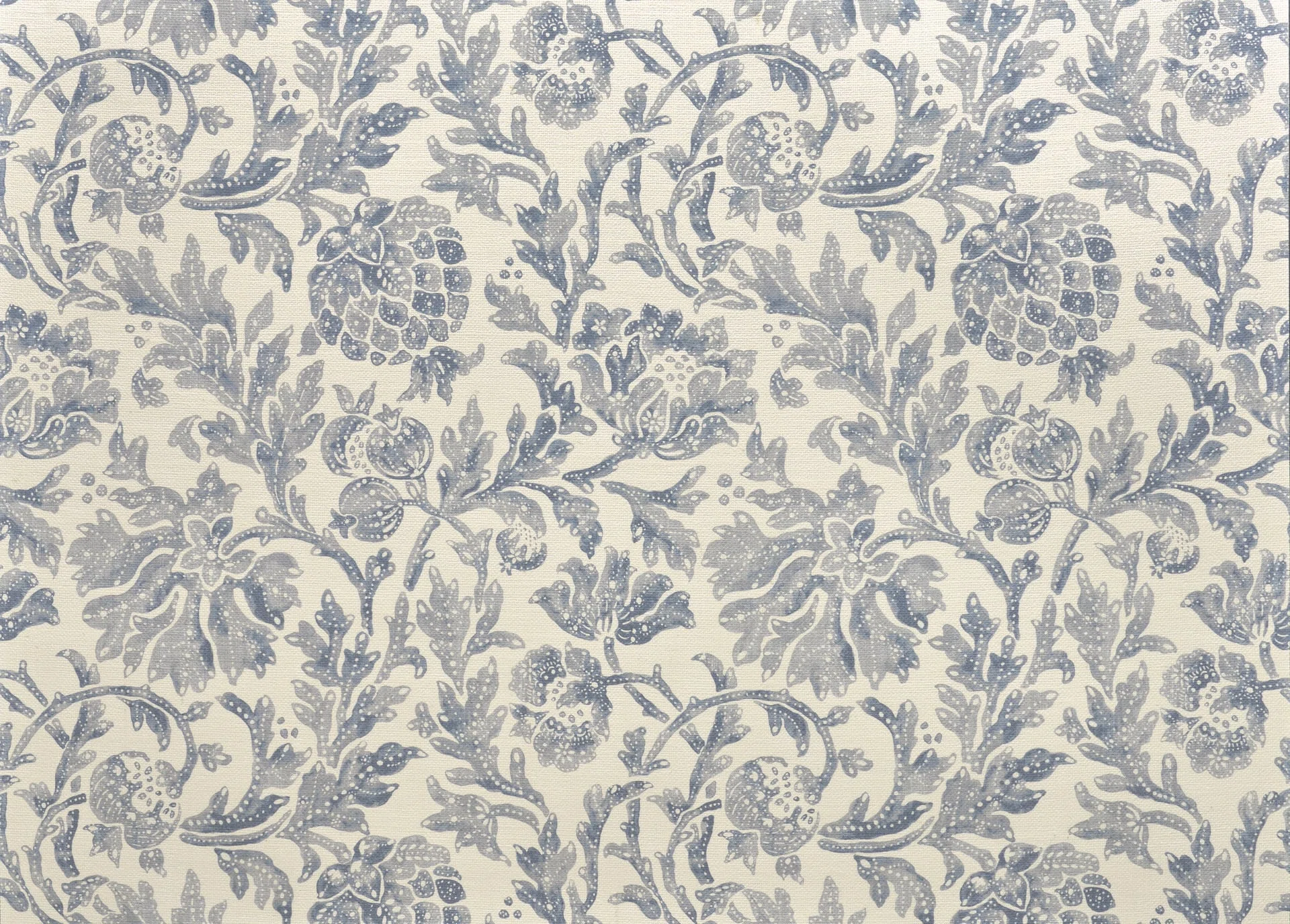 Magnificent jute print, featuring a charming pomegranate design in an antique style. Its matte, handcrafted appearance, combined with its luminous tones, gives this beautiful wallpaper a timeless character.
