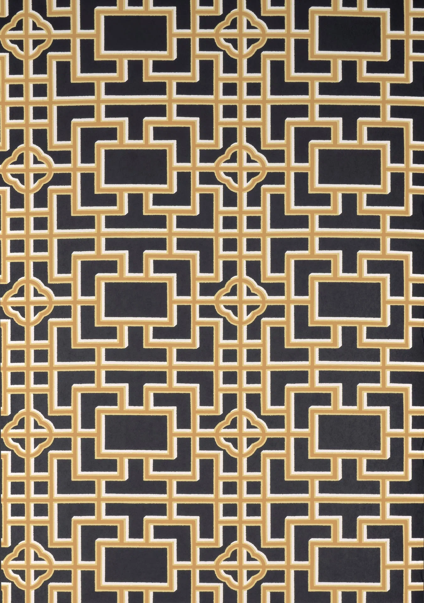 A free interpretation of French parterres, this traditional roller-printed design plays on the contrasts between matte and satin inks, creating a grap...