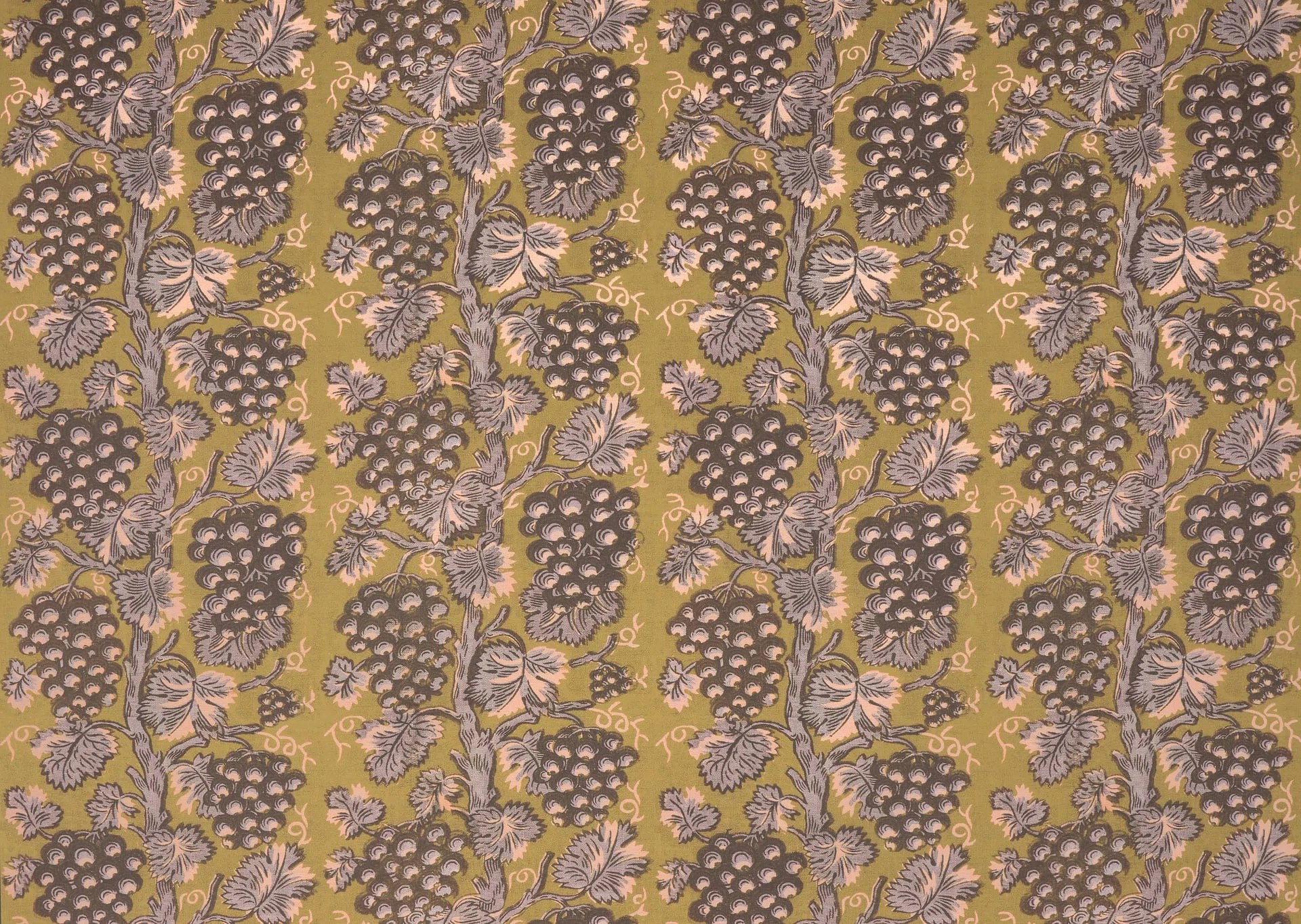 Harcourt reinterprets a woodblock-printed canvas from the second half of the 18th century, preserved in the Maison’s archives. Celebrating the bounty of nature in a Rousseauist spirit, its striped grape pattern, printed on linen laminated to a non-woven backing, carries the charm of historical references and the sincerity of designs whose perfect balance stems from the natural imperfection of the hand.