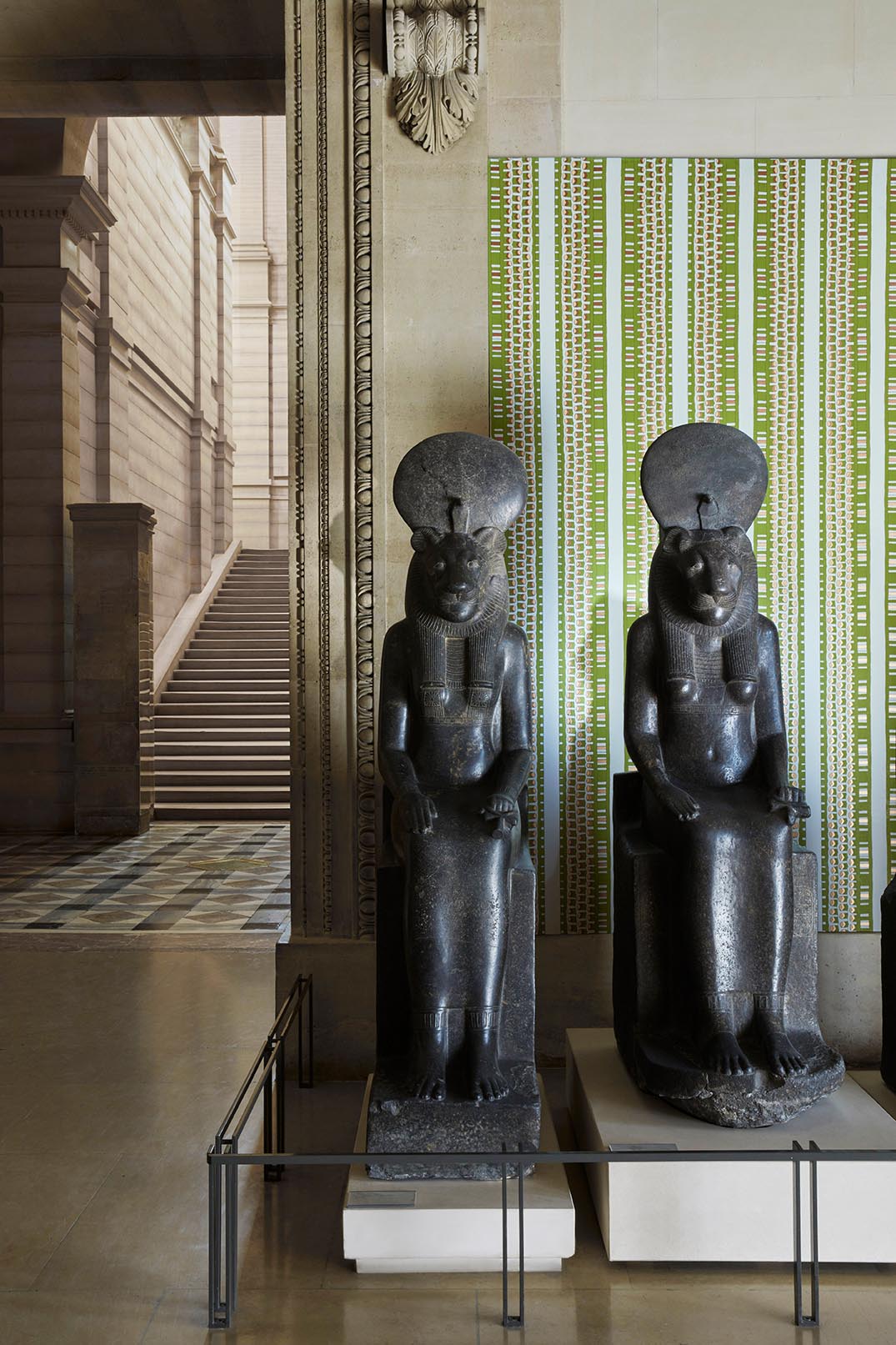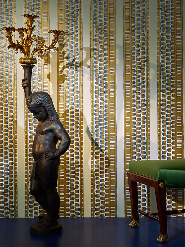 The collections of textiles, wallpapers and rugs " Merveilles d'Egypte " resonate with the sacred art, materialized by the pyramids and their decorations with a form of celebration of life on the Nile. They pay tribute to an Egyptomania born at the end of the 18th century with the Egyptian campaign, whose civilization, power, mystery and refinement have never ceased to fascinate scientists, historians and artists.
