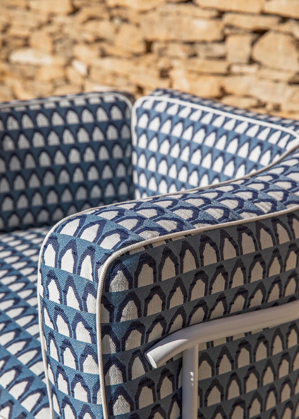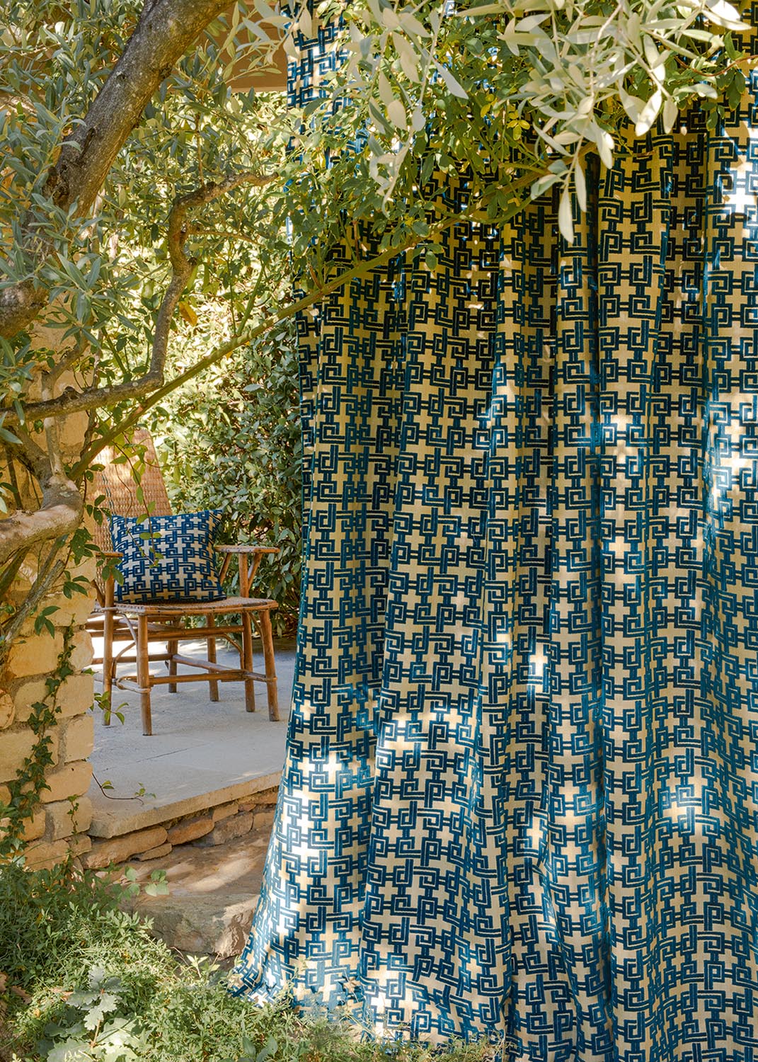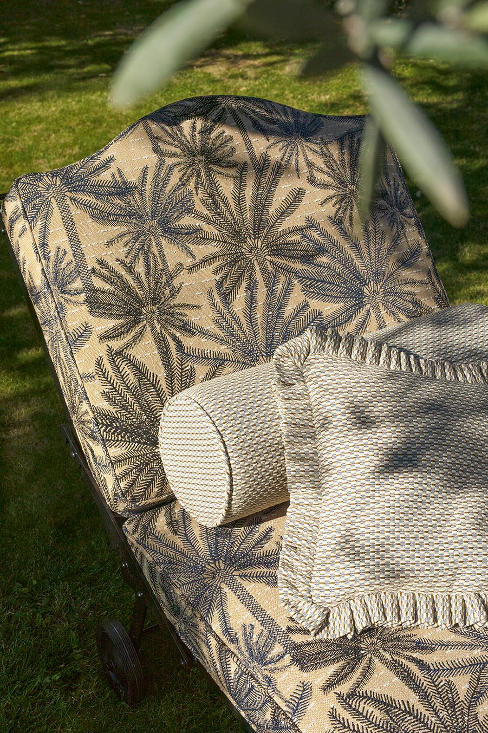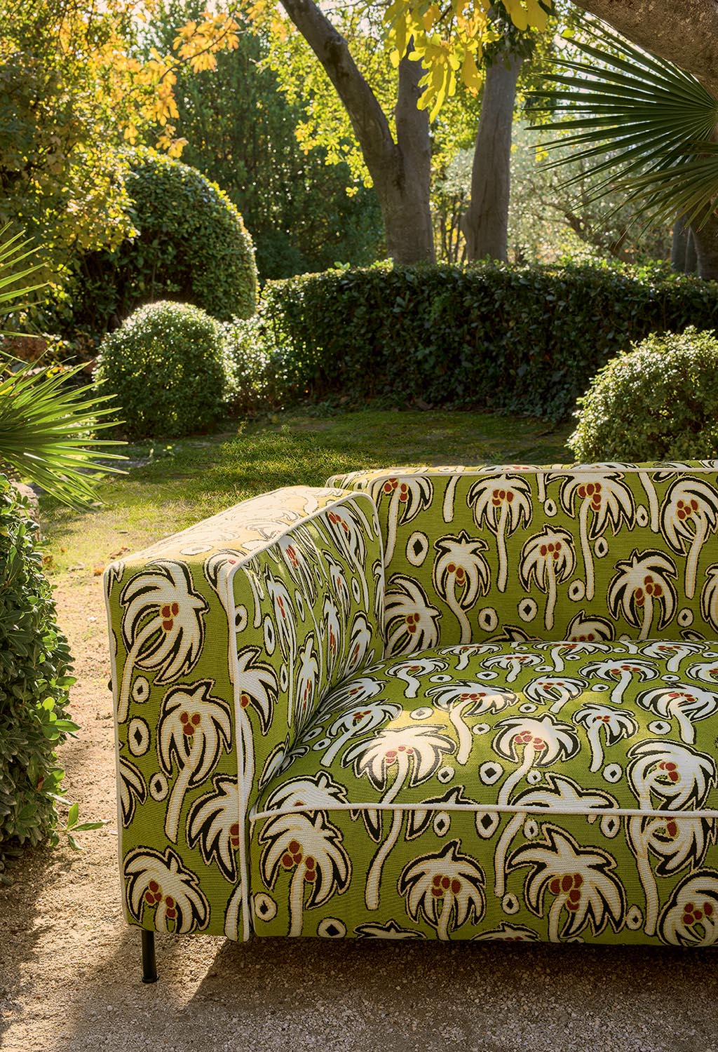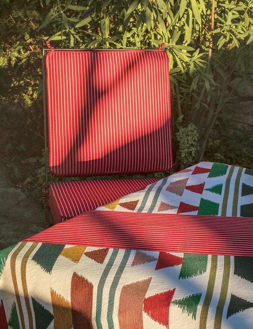 Collection In et Outdoor inspirée des plus belles plages italiennes, BELLAGIO revisite les feuillages et la palmeraie sans oublier les dessins géométriques et rayures intemporelles, dans un esprit et une gamme graphique et joyeuse. Tous les tissus sont Haute Performance, adaptés à une utilisation siège et rideau Outdoor et conservent une main particulièrement souple.