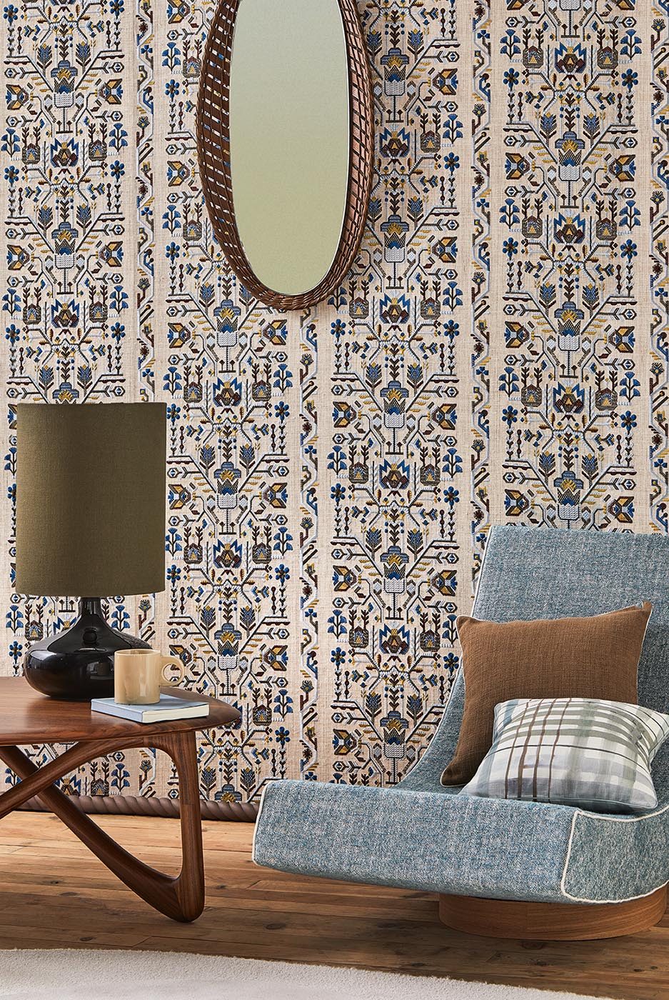 Toujours avide d’échappées belles, la Maison Pierre Frey nous invite à un voyage fantasmé en Scandinavie. Ses paysages, sa lumière laiteuse si particulière, son héritage culturel si proche de nous, sont les paradigmes de cette collection à l’esthétique douce et poétique.