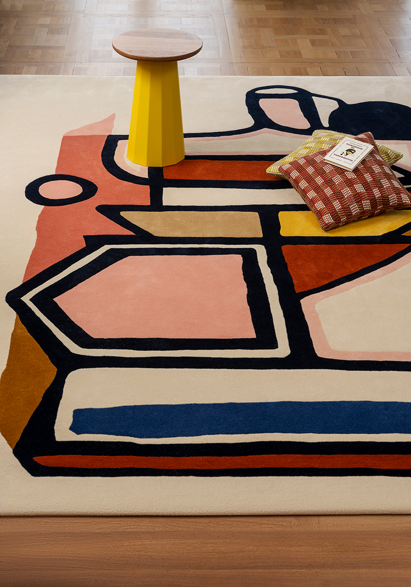 Du Bauhaus à nos jours, en passant par l’art cinétique, ce langage pictural s’appuie sur la représentation et la combinaison de formes géométriques dans un espace bidimensionnel. Les rapports entre plein et vide, lignes et couleurs, créent un champ graphique évocateur. Le choix des techniques, la palette de couleurs vives et la préférence donnée aux matières naturelles permettent à cette collection de « vibrer » dans une tonalité joyeuse.
