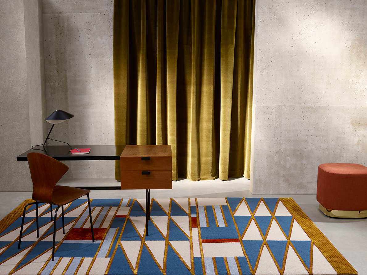 Dans une totale liberté d’interprétation, cette collection joue sur des rythmes différents et des associations de couleurs contrastées. Elle est composée de jacquards, broderies et rayures aux effets de matières variées, ainsi que de tapis et moquettes développés dans différentes techniques telles que le noué-main traditionnel népalais, le tuft-main ou le tissage en grande largeur. La collection de tissus, tapis et moquettes TRIBU aux dessins exclusifs s’harmonise avec les papiers peints de la collection RITUEL. Cet ensemble démontre l’universalité des formes graphiques. Seul, le regard est singulier, question de lieu et de culture.