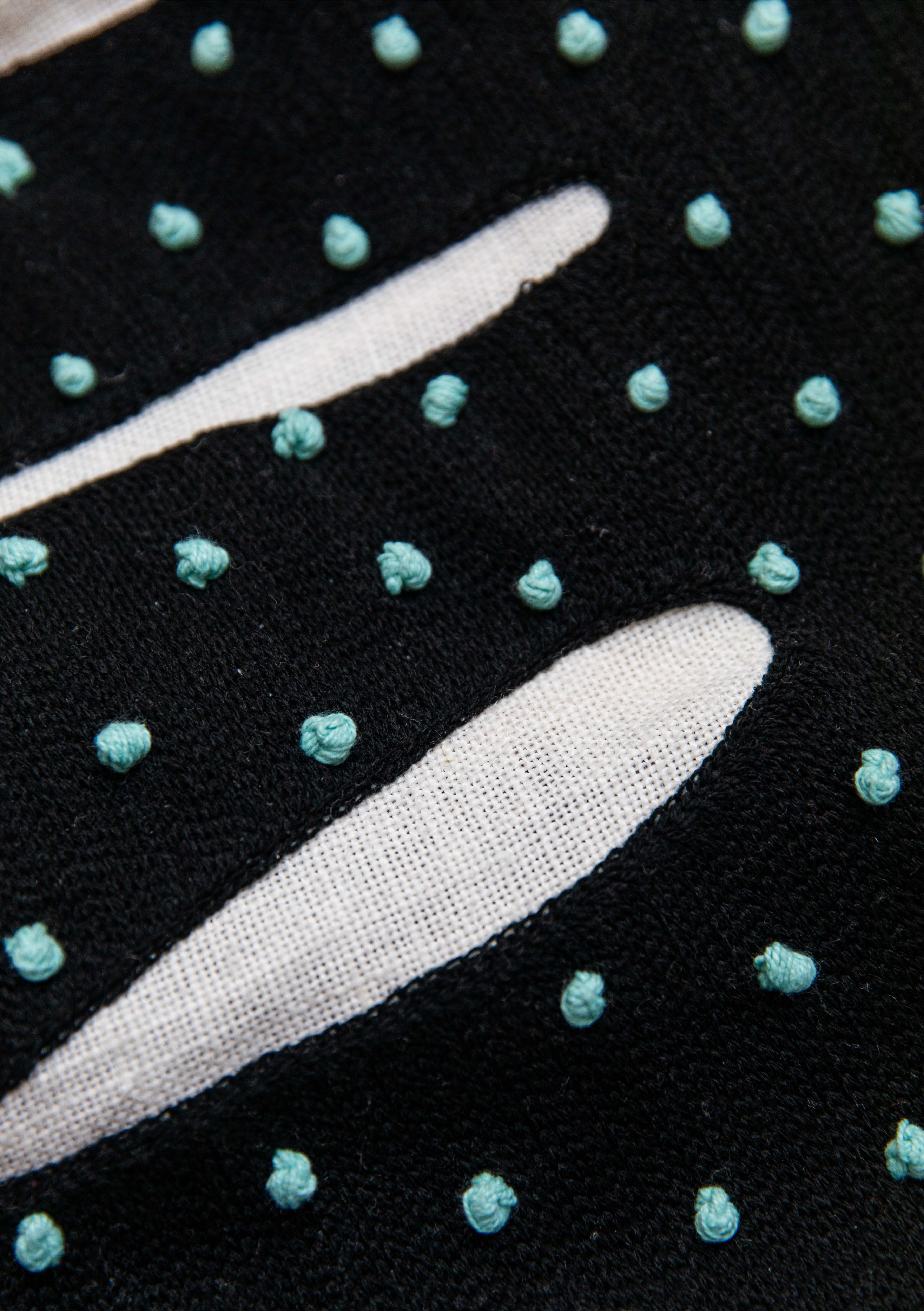 Ses compositions sont constituées de couches successives de peintures acryliques et pastel gras. Son trait est tantôt opaque ou transparent, mat ou brillant, lisse ou en relief.