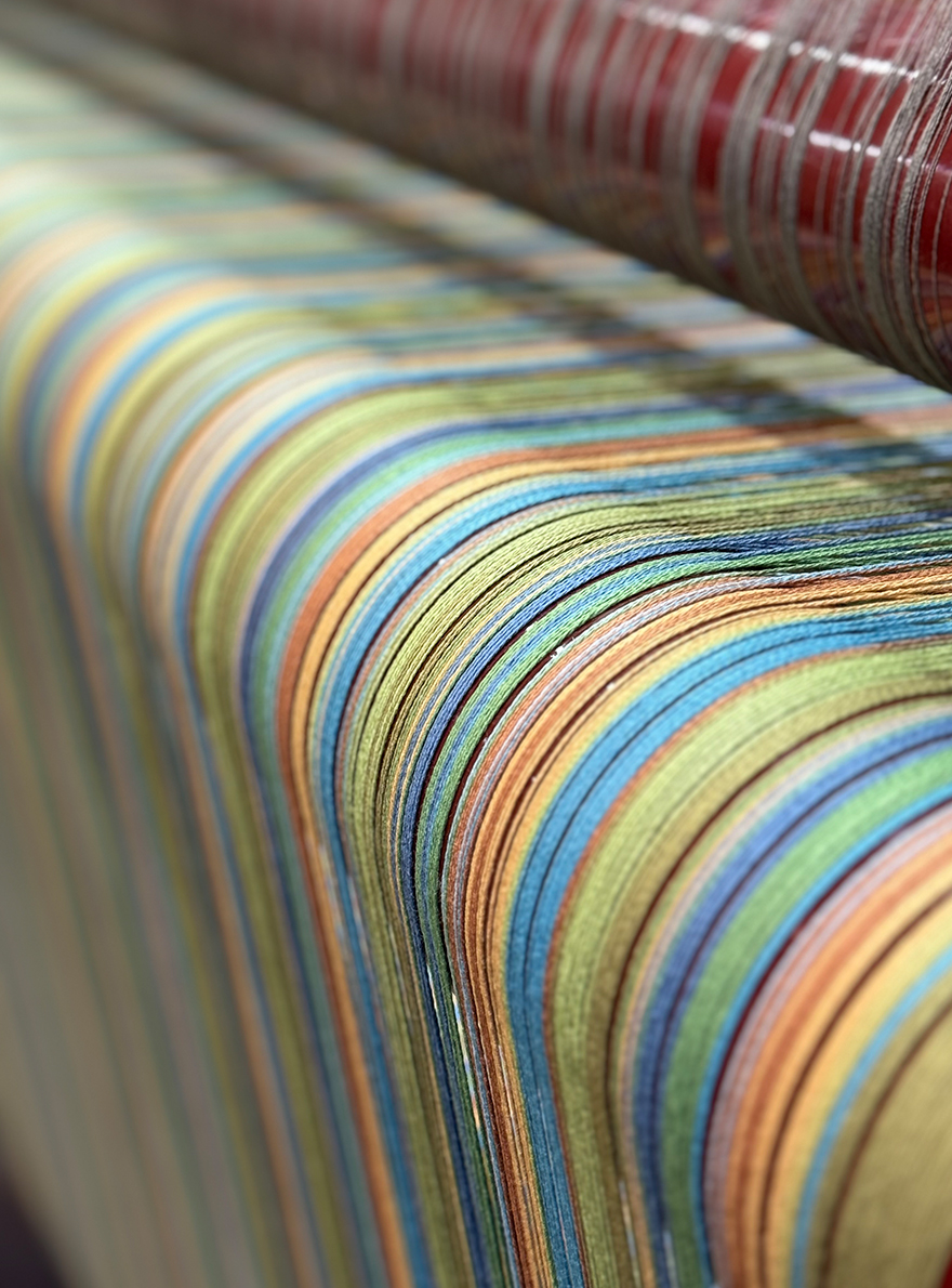 La rayure épinglée multicolore et irrégulière de CLOSERIE fait écho à une nature vibrante et généreuse.
