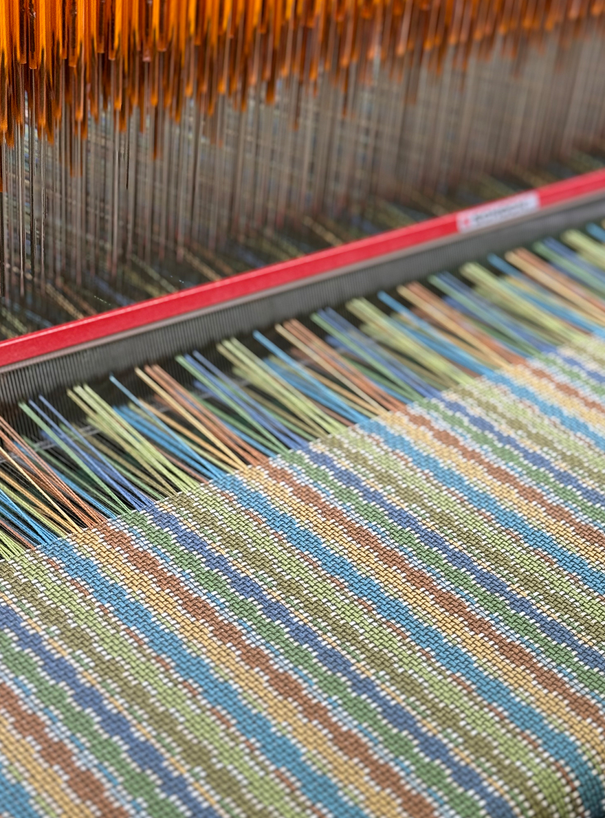 La collection Belvedere est tissée dans les ateliers Pierre Frey du nord de la France labellisés EPV et experts en Europe dans le tissage de textiles résistants à la lumière et antitache.