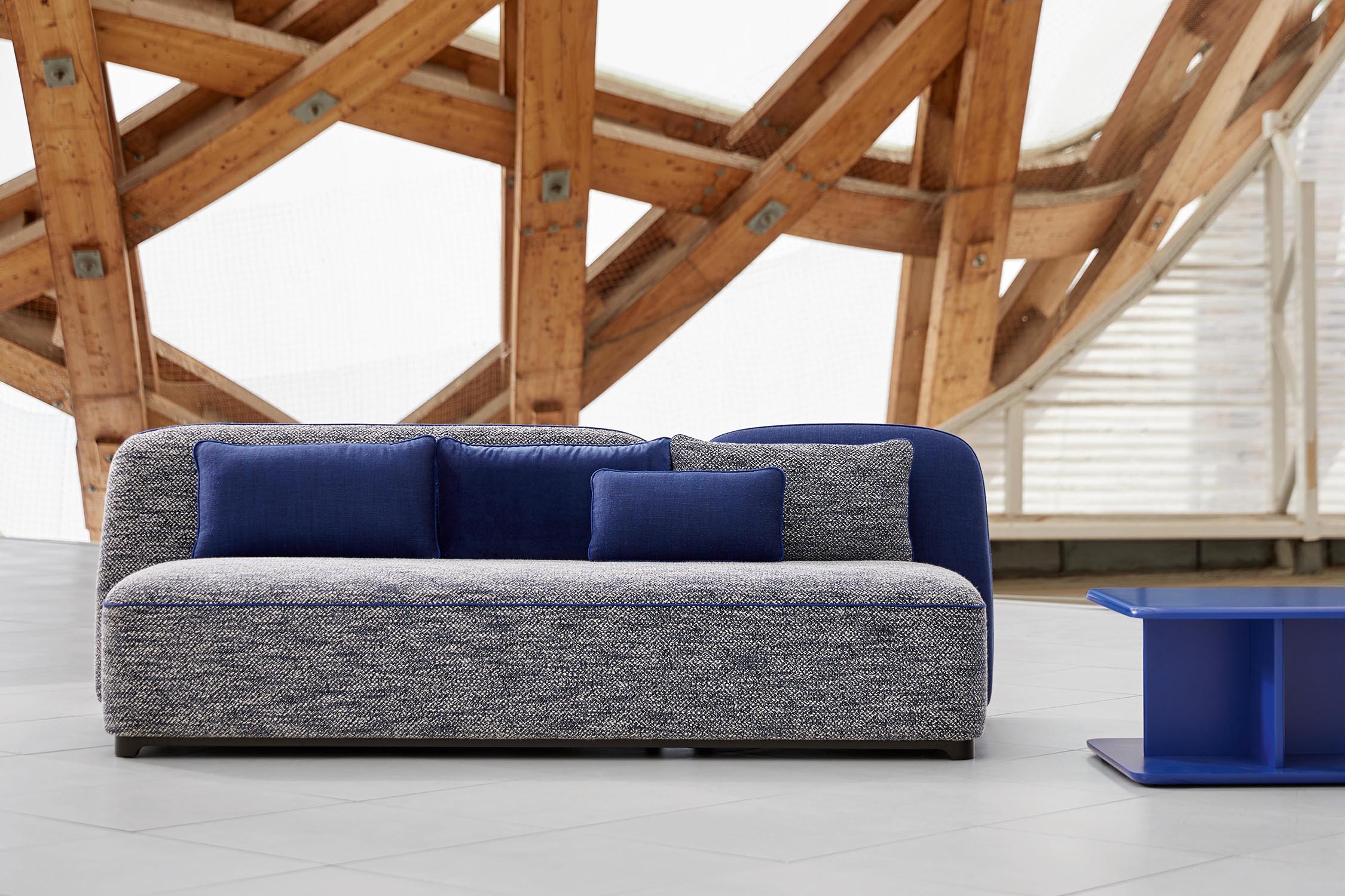 L’ensemble est composé de 14 éléments (poufs, banquettes, dossiers, tables et accotoirs) à utiliser ensemble ou séparément, seuls ou en version multiple, reliés entre eux au gré des envies, par un ingénieux système d’accroches.