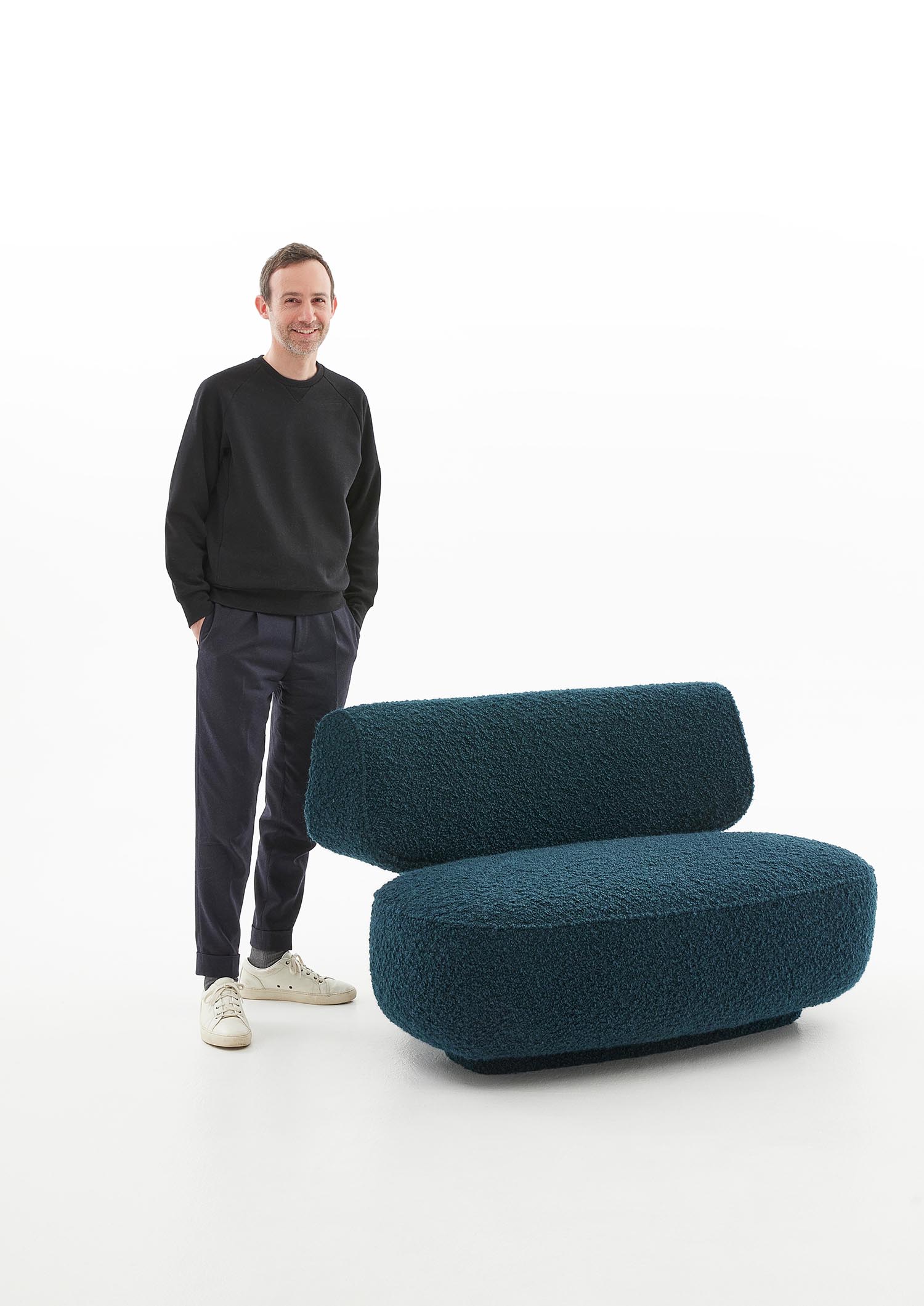 La ligne LITHO dessinée par Guillaume Delvigne, signifie « pierre » en grec ancien. Elle s’apparente à un paysage primitif où chaque pièce aurait sa propre personnalité et entrerait en résonnance les unes avec les autres. Chaque pièce est le fruit d’un assemblage de volumes, imbriqués ou simplement posés les uns sur les autres renforçant ainsi cette présence monolithique. De grandes formes massives et sculptées à l’aspect poli presque minéral émergent. Intégralement gainées de tissu, elles rendent hommage au savoir-faire historique de la Maison.
