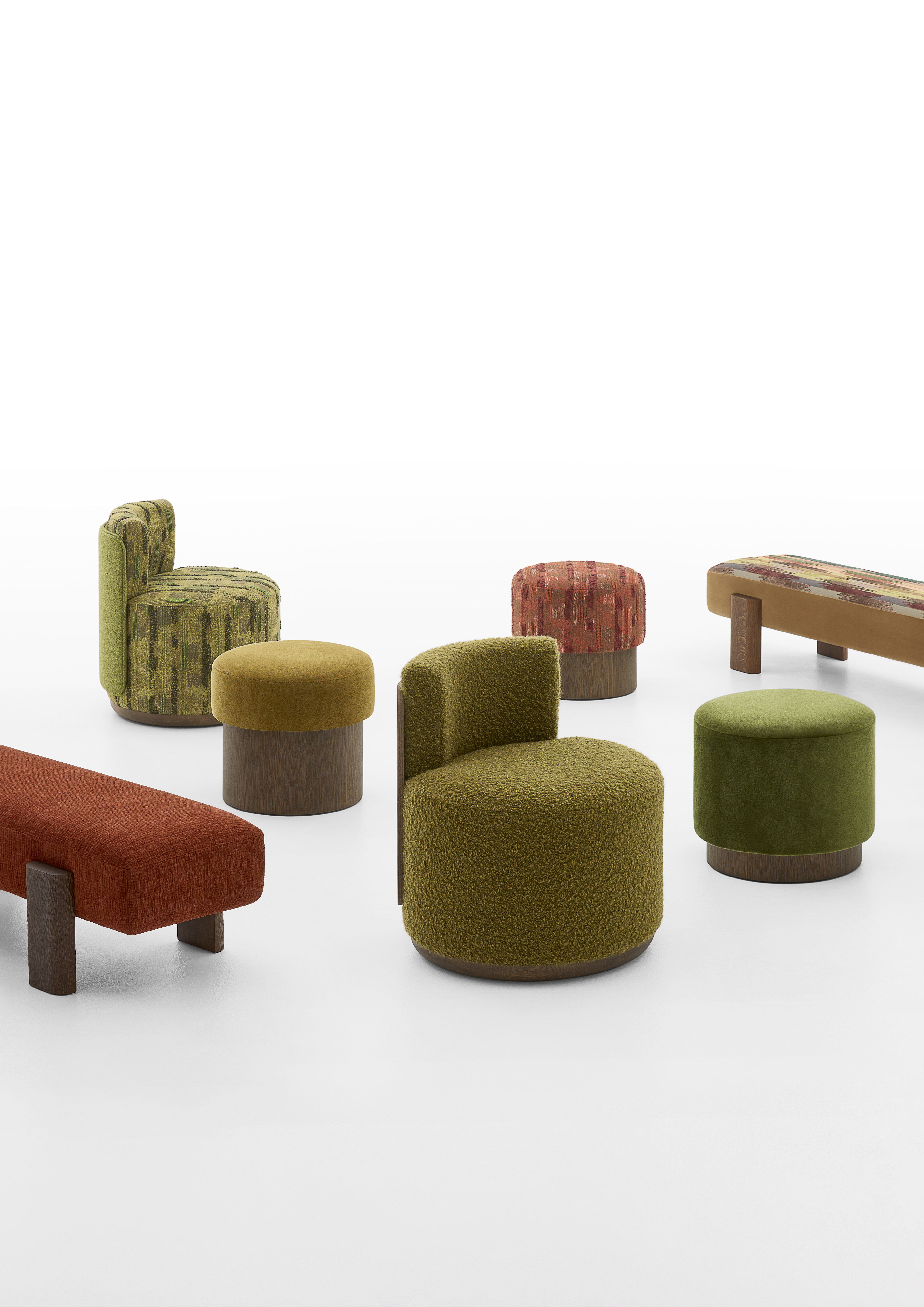 Avec MARTA, Gregory Beson imagine une ligne tendre et mobile, à la croisée de la menuiserie et de l’art du tapissier. Pensée comme une série de petites îles