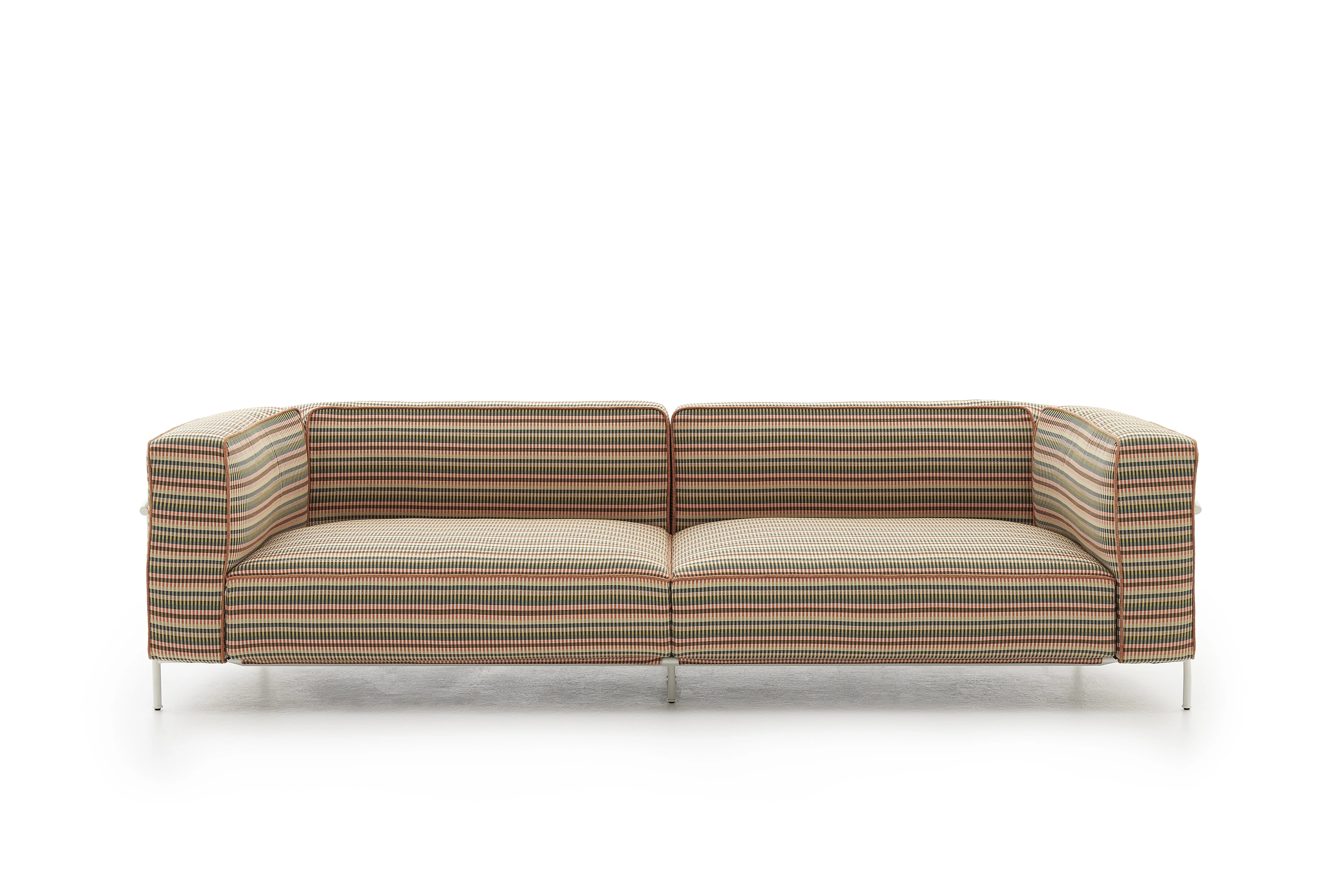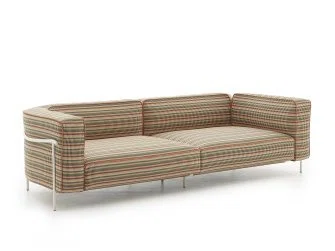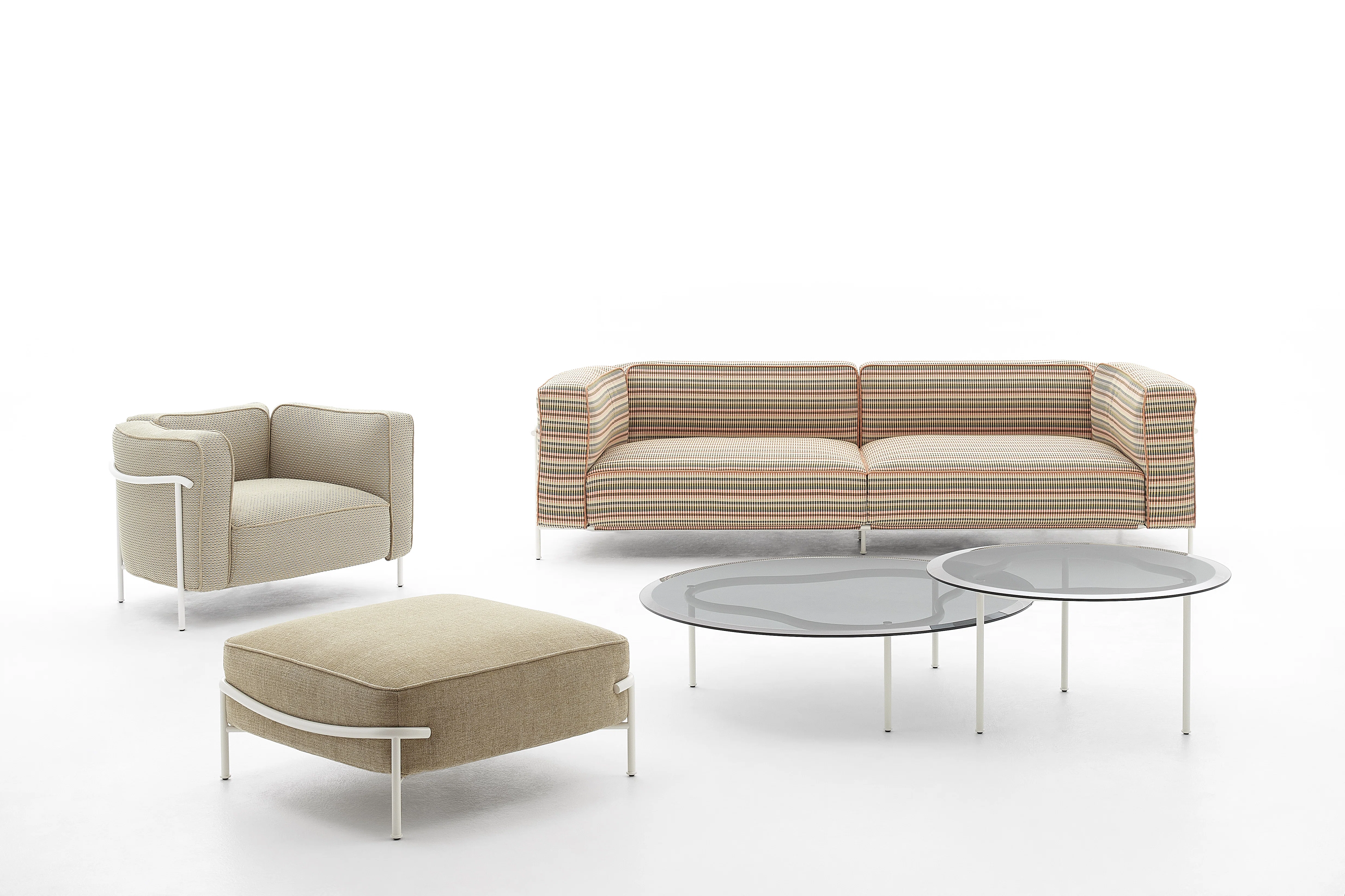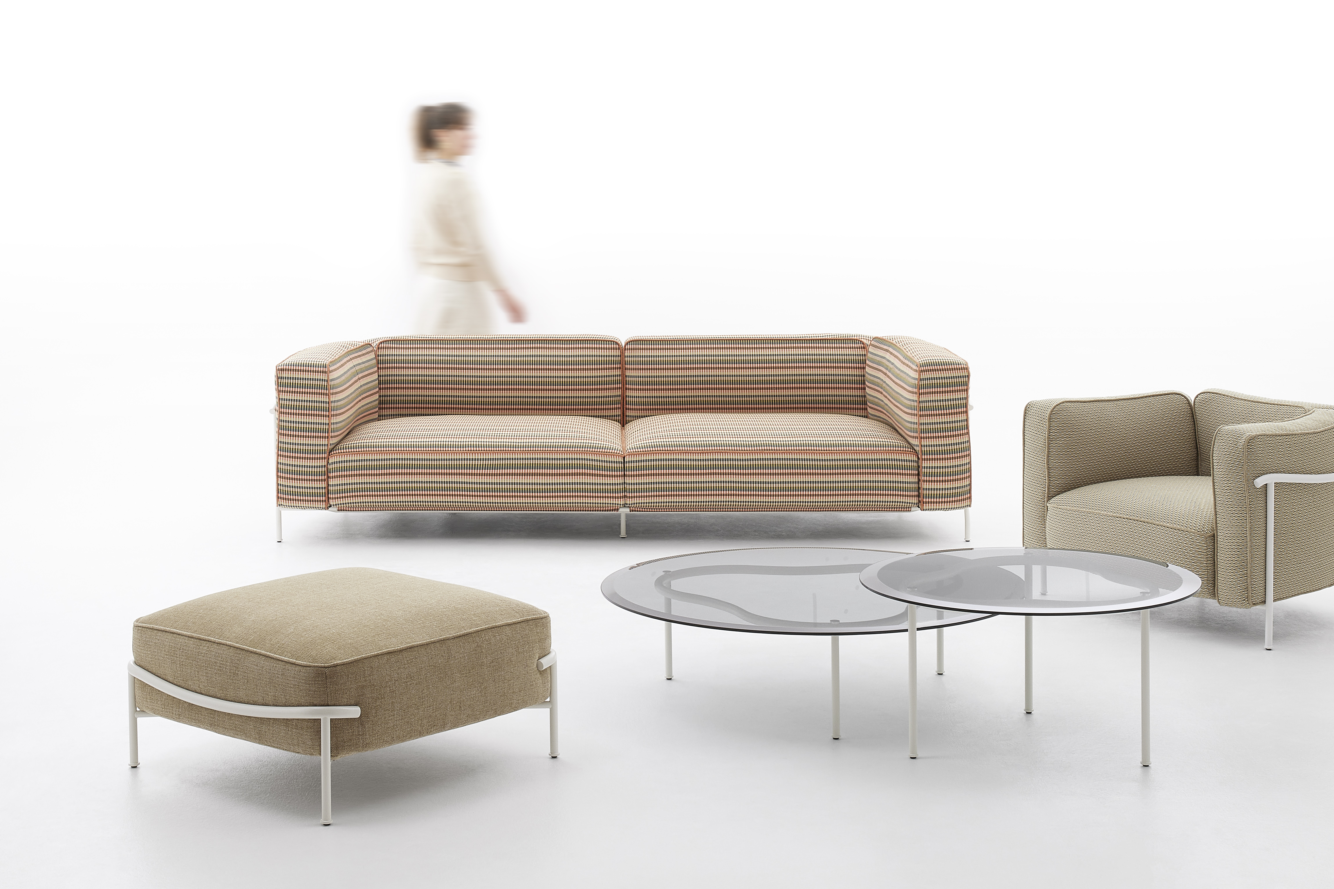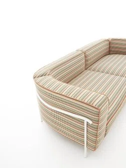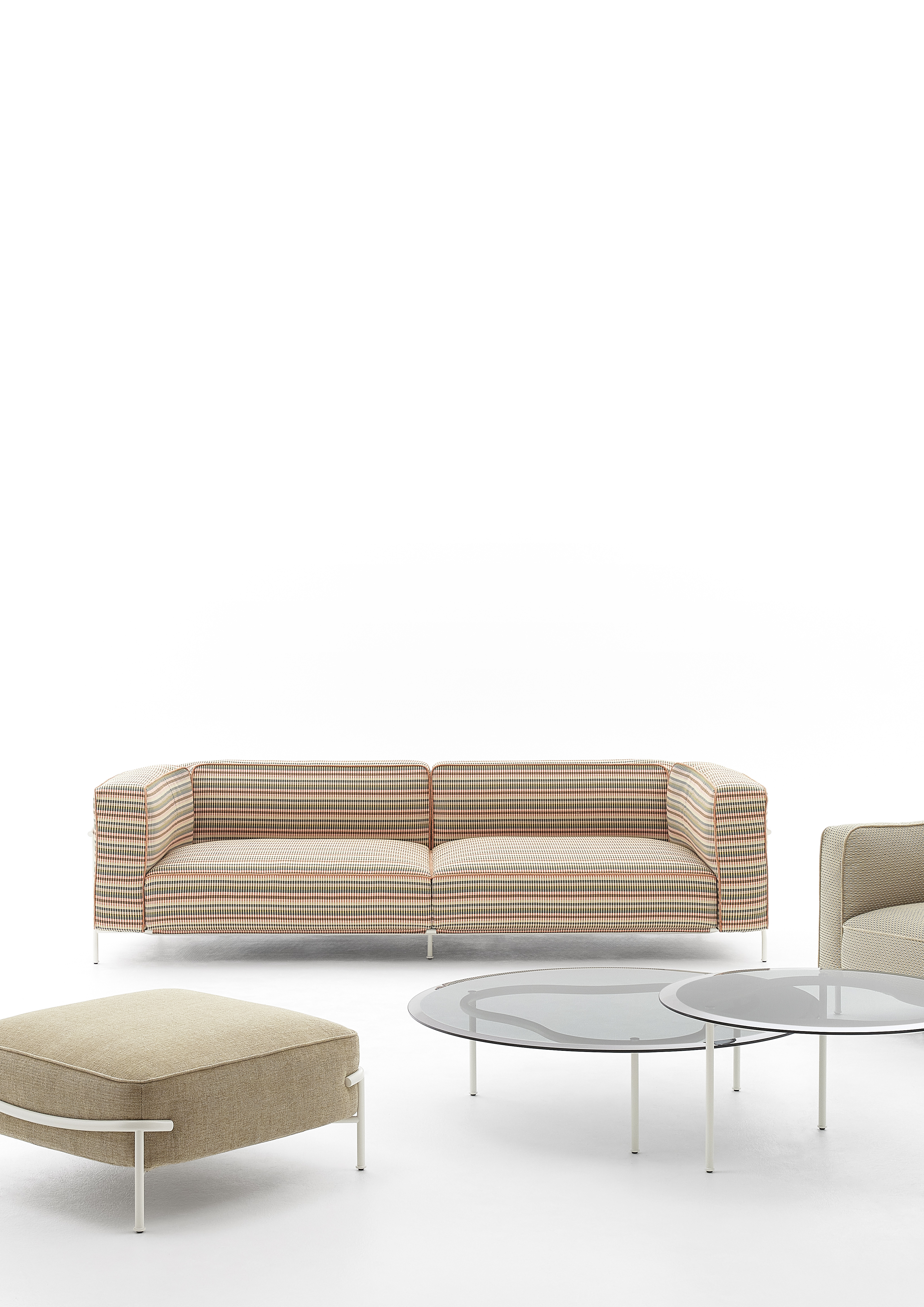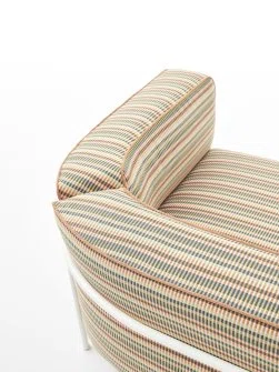 La ligne indoor et outdoor Mirage, nous ramène aux songes des nuits d'été. Elle célèbre l'attente de la saison estivale, les premiers rayons de soleil du printemps, qui apportent un sentiment de joie et d'euphorie. La générosité des coussins épouse les formes du corps et nous invite à nous détendre, en profitant du soleil. La structure métallique fine, sous forme de vagues, entoure les coussins et fait référence à un mirage, une illusion d'optique due à la réfraction inégale des rayons solaires.