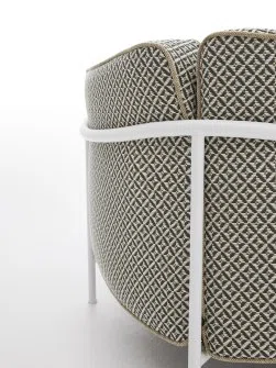 La ligne indoor et outdoor Mirage, nous ramène aux songes des nuits d'été. Elle célèbre l'attente de la saison estivale, les premiers rayons de soleil du printemps, qui apportent un sentiment de joie et d'euphorie. La générosité des coussins épouse les formes du corps et nous invite à nous détendre, en profitant du soleil. La structure métallique fine, sous forme de vagues, entoure les coussins et fait référence à un mirage, une illusion d'optique due à la réfraction inégale des rayons solaires.