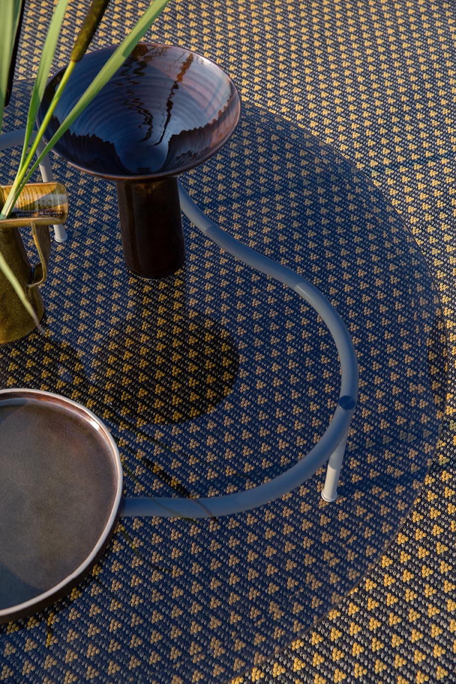 La ligne indoor et outdoor Mirage, nous ramène aux songes des nuits d'été. Elle célèbre l'attente de la saison estivale, les premiers rayons de soleil du printemps, qui apportent un sentiment de joie et d'euphorie. La générosité des coussins épouse les formes du corps et nous invite à nous détendre, en profitant du soleil. La structure métallique fine, sous forme de vagues, entoure les coussins et fait référence à un mirage, une illusion d'optique due à la réfraction inégale des rayons solaires.