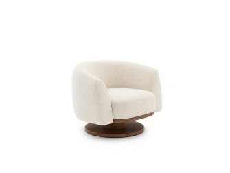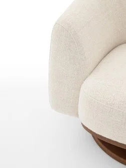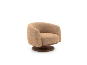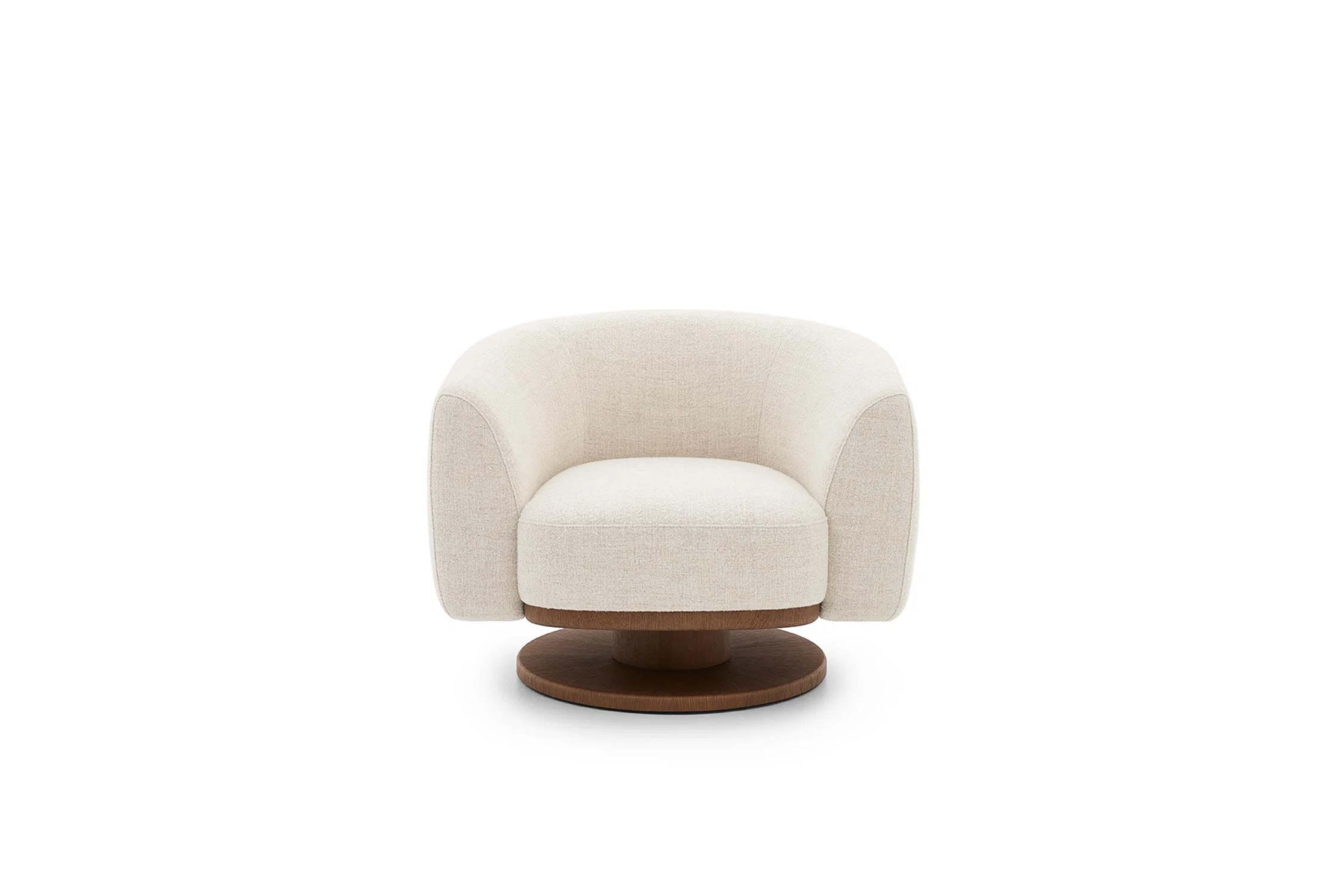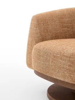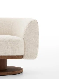 VESTA, dessinée par Garnier & Linker, est une ligne pensée comme un ensemble, où chaque pièce répond à l’autre dans un équilibre de formes et de proportions. Fauteuil, chaise, pouf et guéridons partagent une même écriture : des volumes pleins et arrondis, portés par un pied central en bois, signature à la fois structurelle et expressive. Son nom évoque Vesta, déesse romaine du foyer ; une présence silencieuse, liée à l’intimité, à la chaleur, à l’ancrage. Tout part de ce pied central. Un élément unique, travaillé dans le bois comme une matière vivante, capable de porter le dessin tout entier. De cette intuition initiale naît le fauteuil, puis, par glissement naturel, la ligne se déploie : les assises s’équilibrent, les guéridons prolongent le geste, dans un jeu de correspondances et de tensions maîtrisées. Le bois y tient un rôle essentiel. Les placages, souvent courbes, exigent une précision extrême et traduisent un savoir-faire où la complexité technique se met au service de la douceur des lignes et de la pérennité des formes. En regard, le gainage des tissus enveloppe les volumes, accentuant leur générosité et prolongeant ce dialogue entre structure et sensation. Les guéridons ouvrent enfin un territoire plus libre. Leurs inserts en laque artistique introduisent une dimension picturale et offrent un champ de personnalisation étendu, permettant à chaque pièce de trouver sa place dans des univers singuliers.