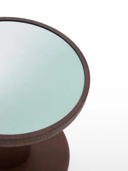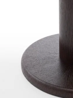 VESTA, dessinée par Garnier & Linker, est une ligne pensée comme un ensemble, où chaque pièce répond à l’autre dans un équilibre de formes et de proportions. Fauteuil, chaise, pouf et guéridons partagent une même écriture : des volumes pleins et arrondis, portés par un pied central en bois, signature à la fois structurelle et expressive. Son nom évoque Vesta, déesse romaine du foyer ; une présence silencieuse, liée à l’intimité, à la chaleur, à l’ancrage. Tout part de ce pied central. Un élément unique, travaillé dans le bois comme une matière vivante, capable de porter le dessin tout entier. De cette intuition initiale naît le fauteuil, puis, par glissement naturel, la ligne se déploie : les assises s’équilibrent, les guéridons prolongent le geste, dans un jeu de correspondances et de tensions maîtrisées. Le bois y tient un rôle essentiel. Les placages, souvent courbes, exigent une précision extrême et traduisent un savoir-faire où la complexité technique se met au service de la douceur des lignes et de la pérennité des formes. En regard, le gainage des tissus enveloppe les volumes, accentuant leur générosité et prolongeant ce dialogue entre structure et sensation. Les guéridons ouvrent enfin un territoire plus libre. Leurs inserts en laque artistique introduisent une dimension picturale et offrent un champ de personnalisation étendu, permettant à chaque pièce de trouver sa place dans des univers singuliers.