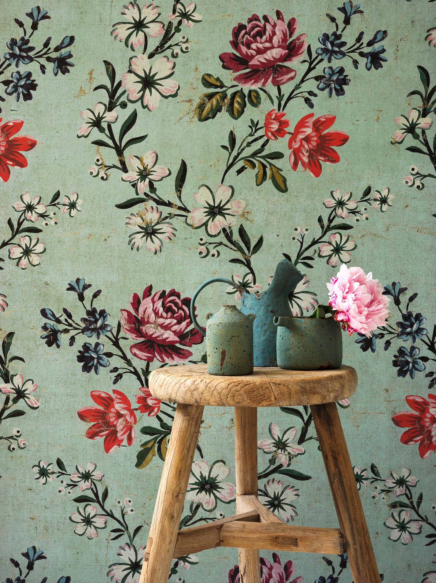 Cet imprimé a été confié à Pierre Frey par la propriétaire du château de Montgeoffroy. Initialement réalisé au pochoir de zinc pour l'un des salons, notre impression en grande largeur lui permet de conserver toute sa noblesse.
